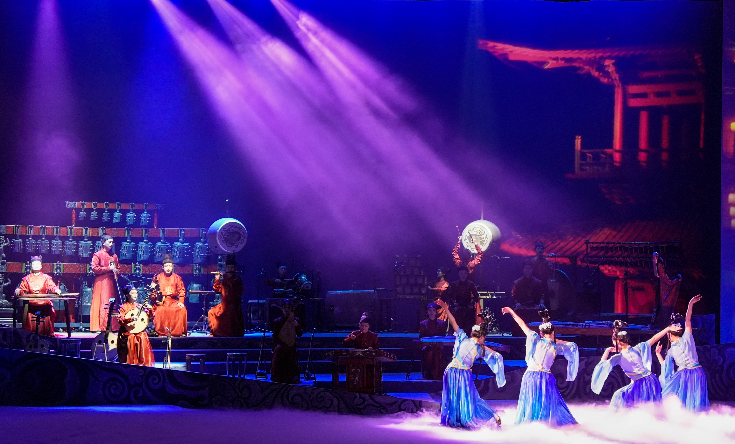 西安鼓乐被誉为“中国古代音乐的活化石”,是国家级、世界级非物质文化遗产。西安外事鼓乐团以“弘扬中华文化、传播古典音乐、振兴鼓乐艺术、凝聚民族精神”为己任。一方面,严格学习继承西安鼓乐的精髓,另一方面,在传承基础上,进行乐器配合、曲目编创、舞美设计等多方面的创新和尝试,取得了显著成果,汇集成为《大唐雅韵 钟鸣鼓乐》音乐会。音乐会既体现出大唐雅乐盛世风貌,又释放出当代音乐表演艺术的非凡魅力,新曲目融合传统与现代元素,广受好评。