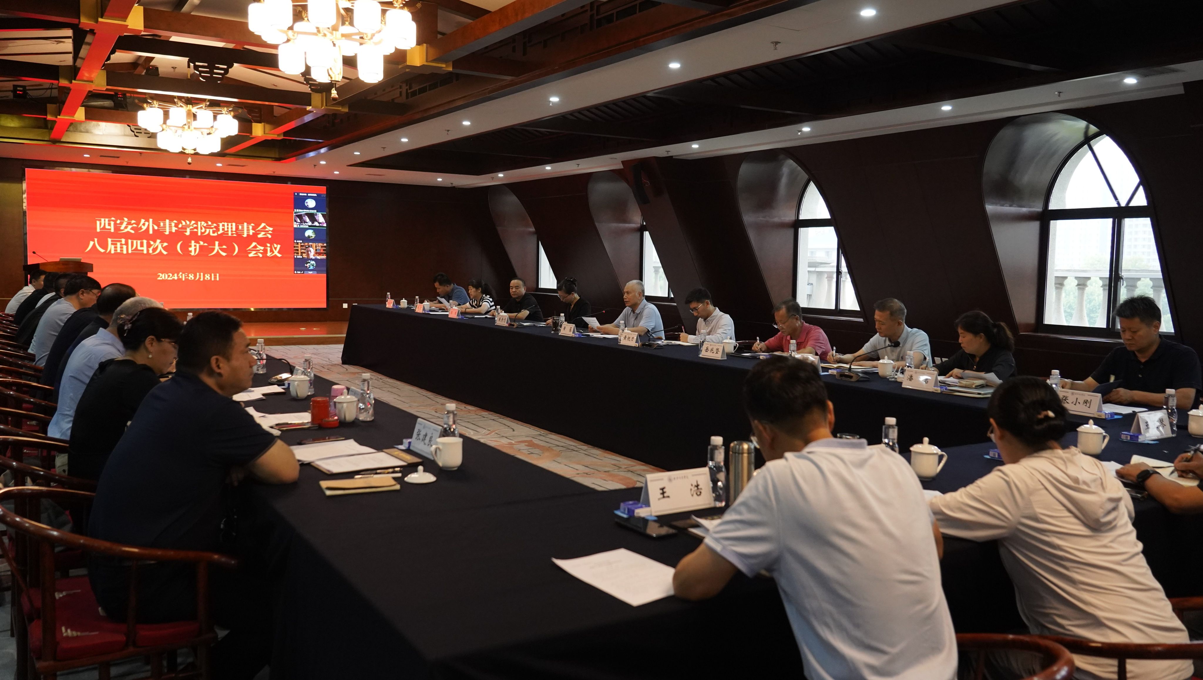 2024年8月8日,西安外事学院理事会八届四次(扩大)会议在图书馆五楼会议室召开。会议深入学习贯彻党的二十届三中全会精神,进一步深化学校教育教学和科研改革,凝心聚力,不懈创新,加快推进学校高质量发展,为教育强国建设贡献力量。