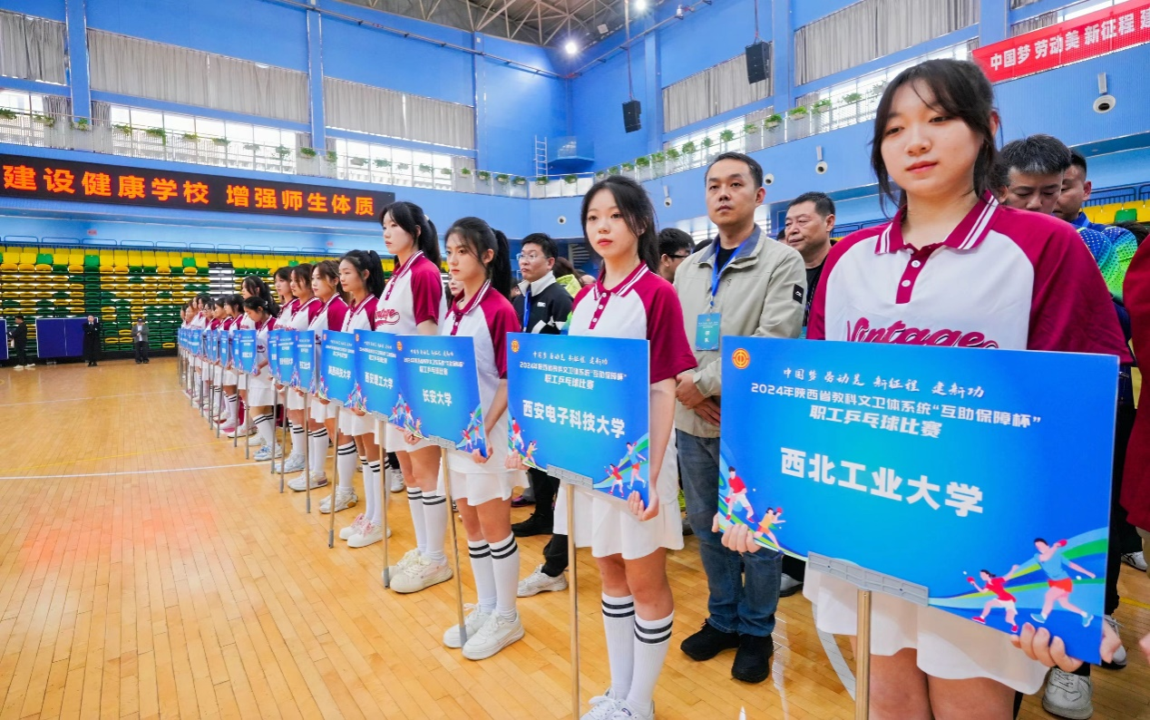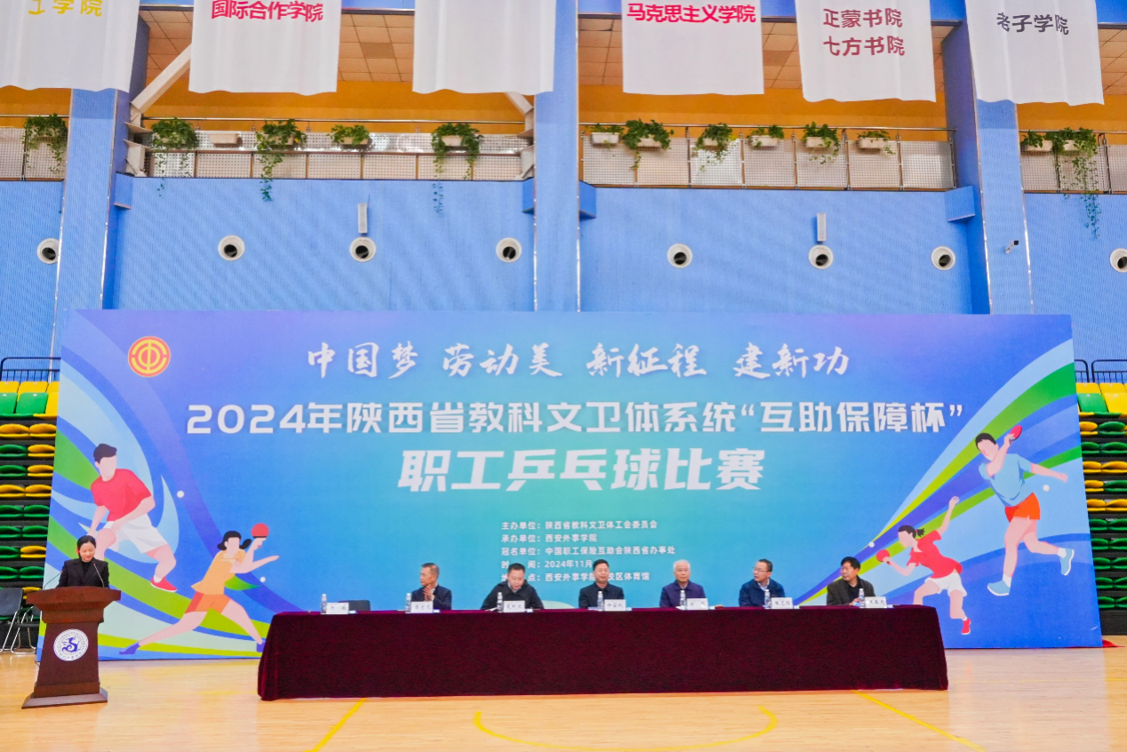 11月1日下午,“中国梦 劳动美 新征程 建新功”2024年陕西省教科文卫体系统“互助保障杯”职工乒乓球比赛在西安外事学院南校区体育馆隆重开幕。