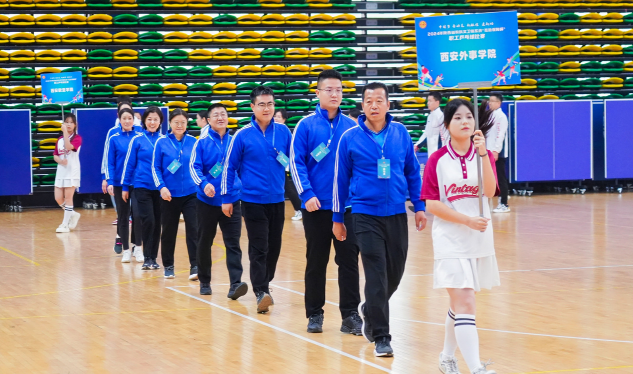 陕西省教科文卫体工会主席徐富权,西安外事学院理事长、校长黄藤,西安外事学院党委副书记、工会主席董宇龙,中国职工保险互助会陕西省办事处主任张志强,陕西省教科文卫体工会副主席夏明文,陕西省职工体育协会秘书长焦春虎等领导及嘉宾出席仪式。开幕式由陕西省教科文卫体工会副主席王薇主持。