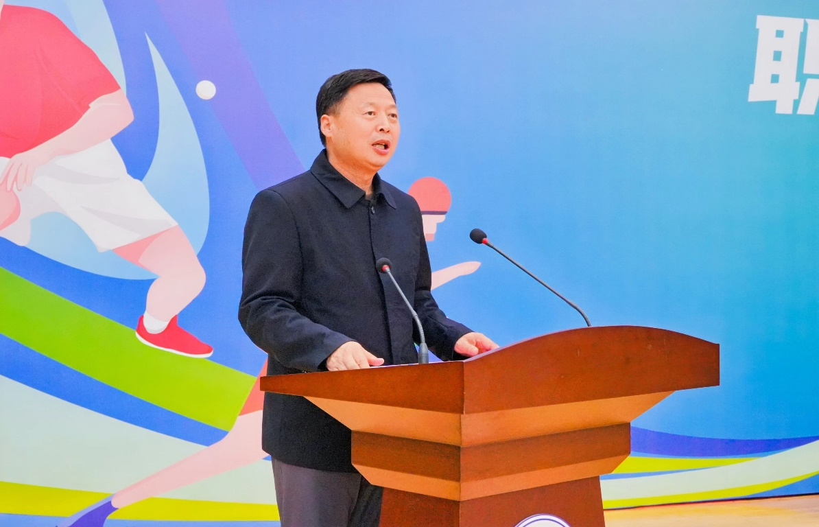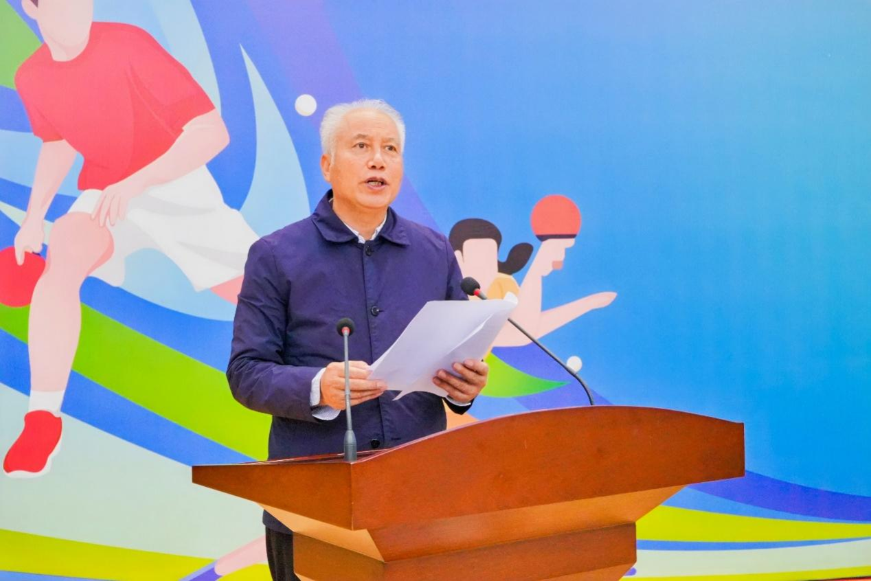 徐富权致开幕词并宣布比赛开幕。他指出,陕西省教科文卫体工会认真贯彻落实党的二十届三中全会精神,坚持把职工群众对美好生活的向往作为使命担当,用心用情做好联系服务职工工作,不断提升职工群众的获得感、幸福感、安全感。今天,在西安外事学院隆重举行2024年全省教科文卫体系统职工乒乓球赛,这是推动全民健身运动的具体举措,也是系统内广大职工交流交往的盛大聚会。为职工展示风采,切磋技艺搭建平台,对强化职工思想引领、增强职工队伍凝聚力、团结引领广大职工群众在全面建设社会主义现代化国家新征程建功立业具有重要意义。