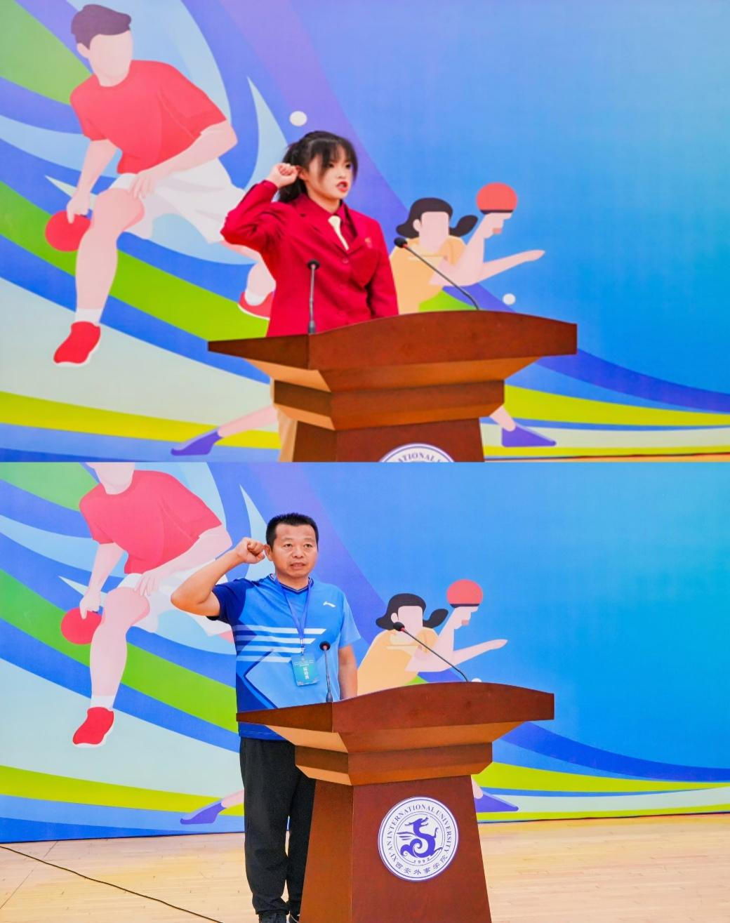 裁判员代表唐蕴甜、运动员代表王必宏两位同志分别宣誓。
