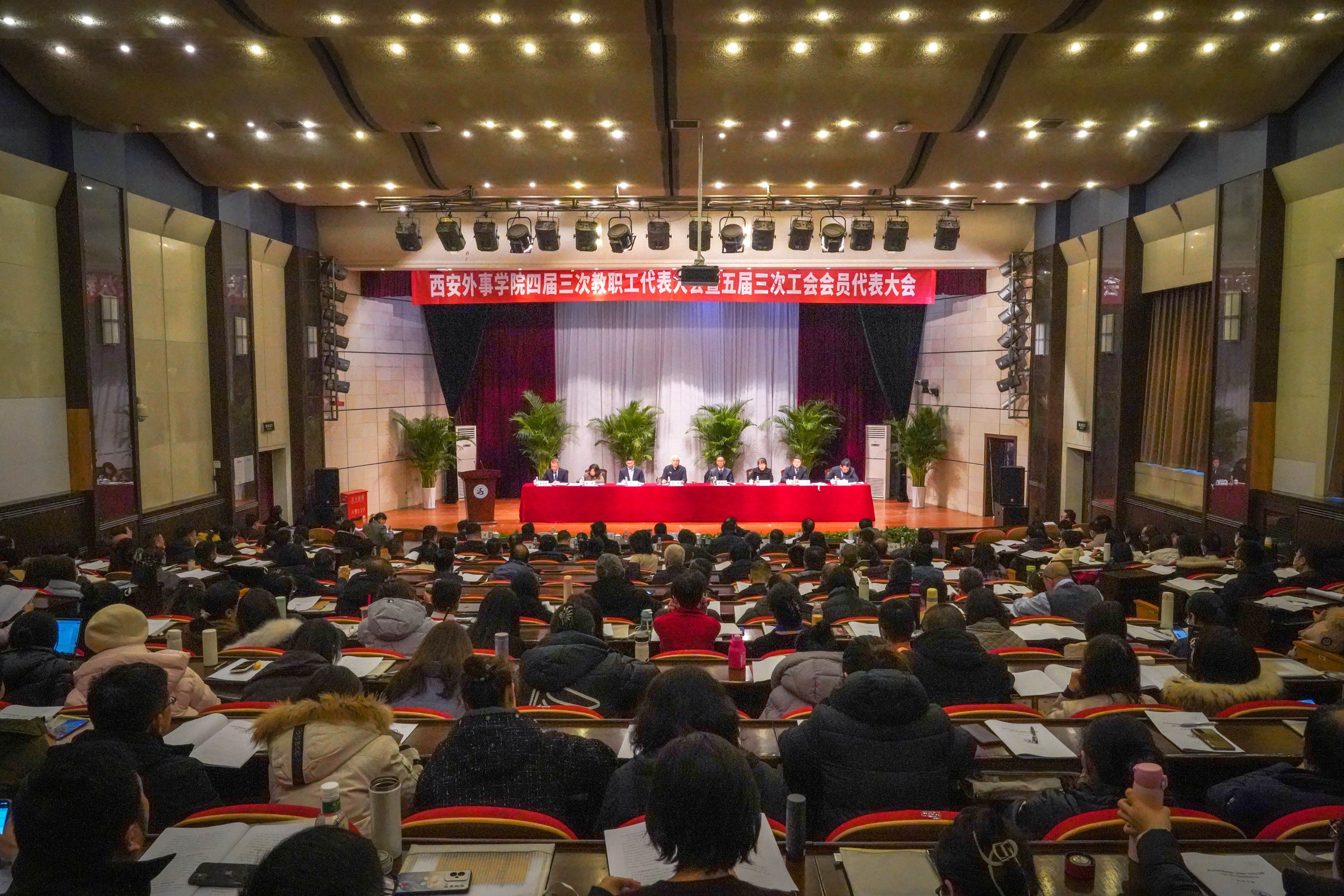 2025年1月7日,西安外事学院在学术苑隆重召开四届三次教职工代表大会暨五届三次工会会员代表大会。学校理事长、校长黄藤,党委书记雷西合分别作了讲话,会议审议了理事长助理、校长助理黄昶力作的2024年度学校工作报告,审议了年度依法治校工作报告、提案工作报告。会议汇聚了广大教职员工智慧与力量,共商学校发展大计,高位推进学校事业发展。校领导,第四届教职工、第五届工会会员代表大会代表、列席代表参会。会议由党委副书记、工会主席董宇龙主持。