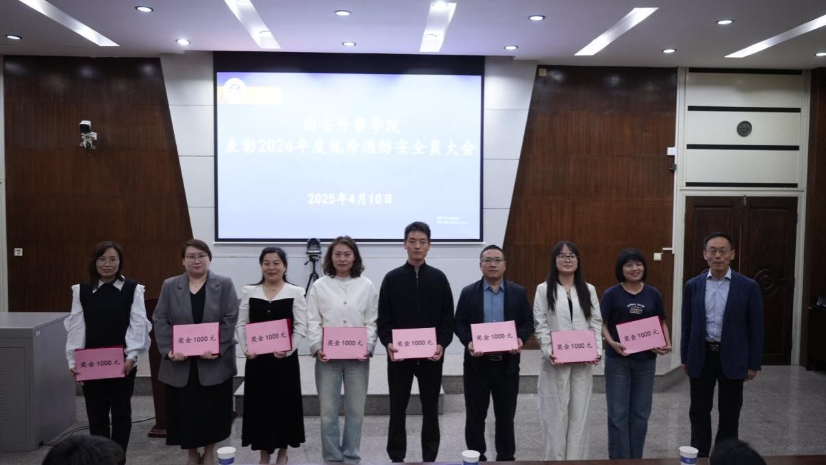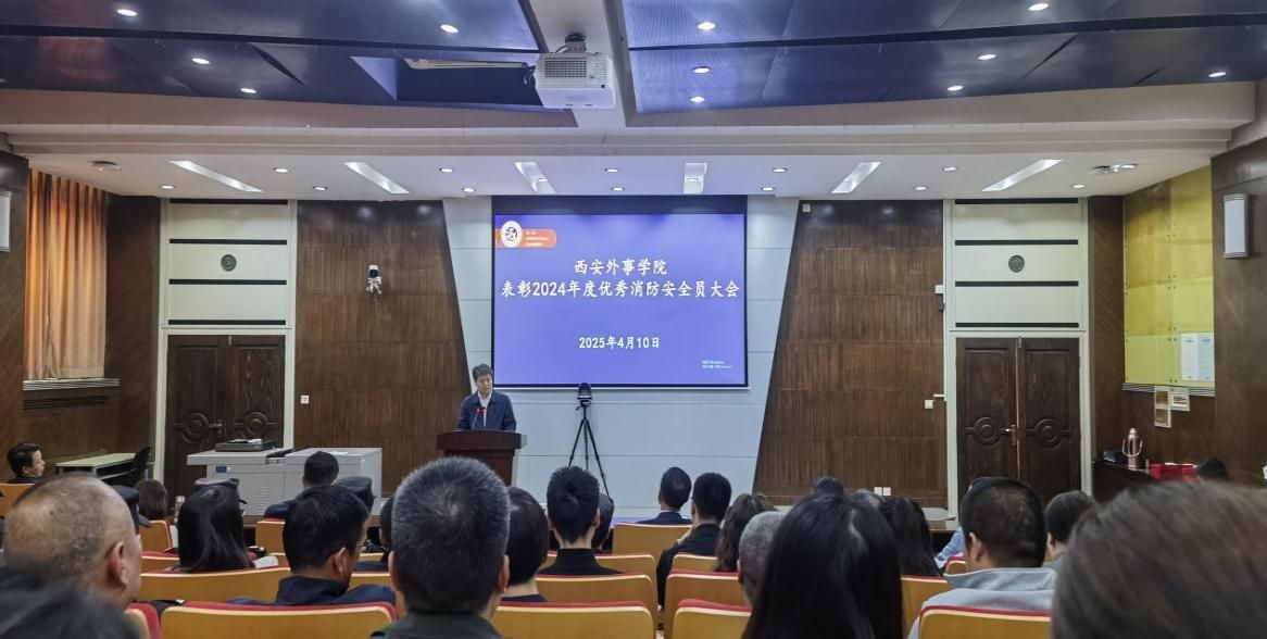 2025年4月10日下午,西安外事学院在学术苑1号报告厅举行表彰2024年度优秀消防安全员大会。学校党委书记雷西合出席会议,保障部部长张小刚,各学院、直属部门分管消防安全工作的负责人,实验室、楼宇基层消防安全员,学校消防志愿者服务队及受表彰的优秀消防安全员参会。会议由学校安全稳定工作领导小组办公室主任冯军权主持。