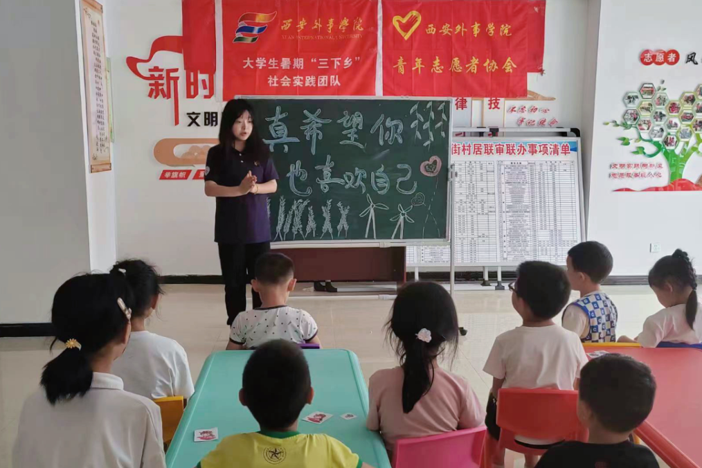 基于学校团委青年志愿者协会实践团在汉中留坝开展的“七彩假期·情暖童心”专项实践活动,张佳宁以一堂《真心希望你也喜欢自己》的课程,让羞怯的孩子喊出“我喜欢自己”;一场手工课后,六岁男孩递上作品:“我要像您一样,带更多人看山那边的风景。”