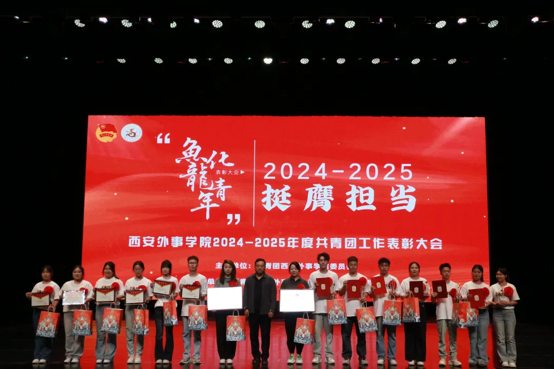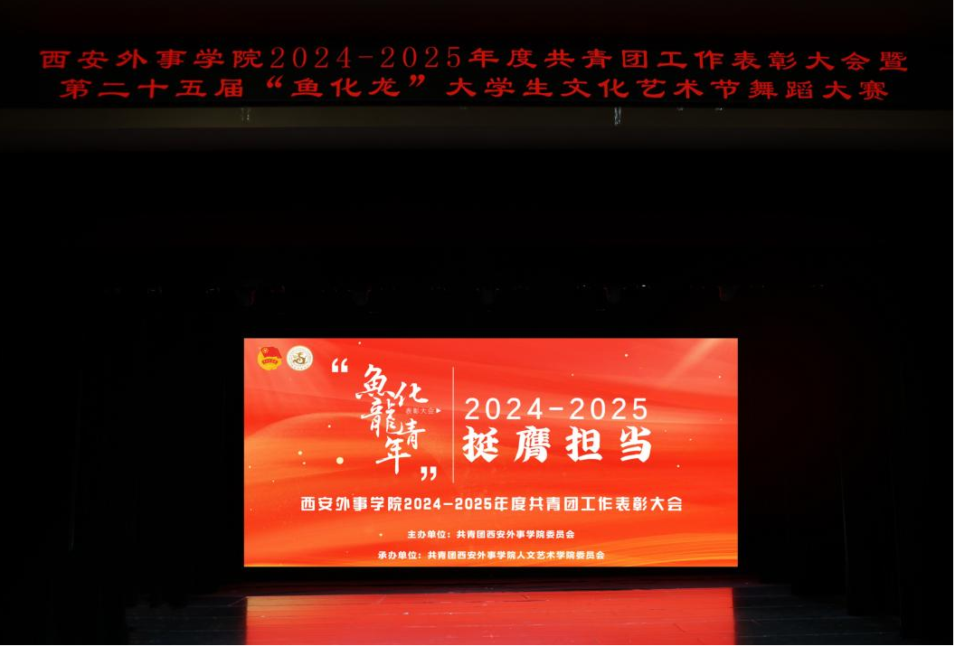 为深入学习贯彻习近平新时代中国特色社会主义思想,落实团的十九大相关部署,弘扬五四精神,激励广大团组织和团员、团干部比学赶超、创先争优,通过表彰先进、树立楷模,在全校范围内掀起创先争优的良好氛围,更好发挥先进典型示范作用。2025年5月16日,由西安外事学团委主办、人文艺术学院、正蒙二院承办的西安外事学院2024-2025年共青团工作表彰大会暨第二十五届“鱼化龙”大学生文化艺术节校园舞蹈大赛于西安鼓乐大剧院举办。
