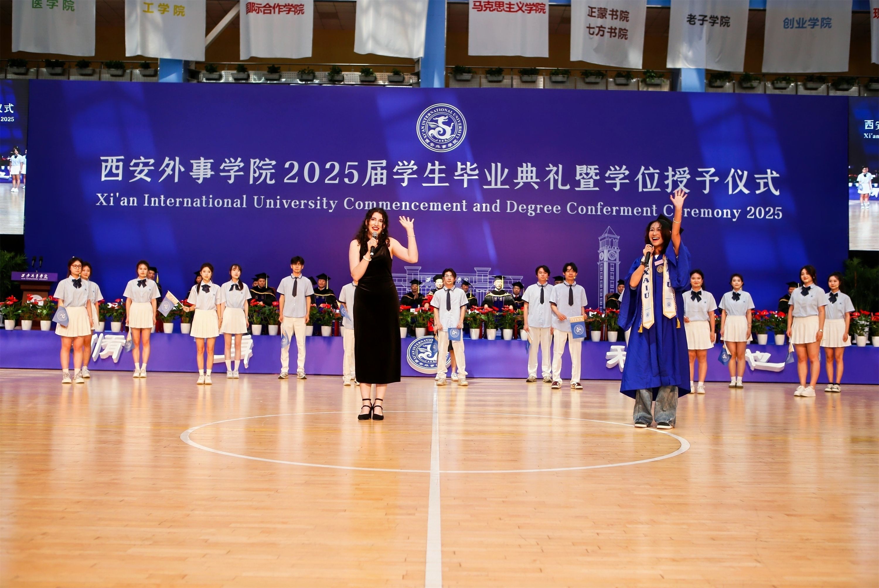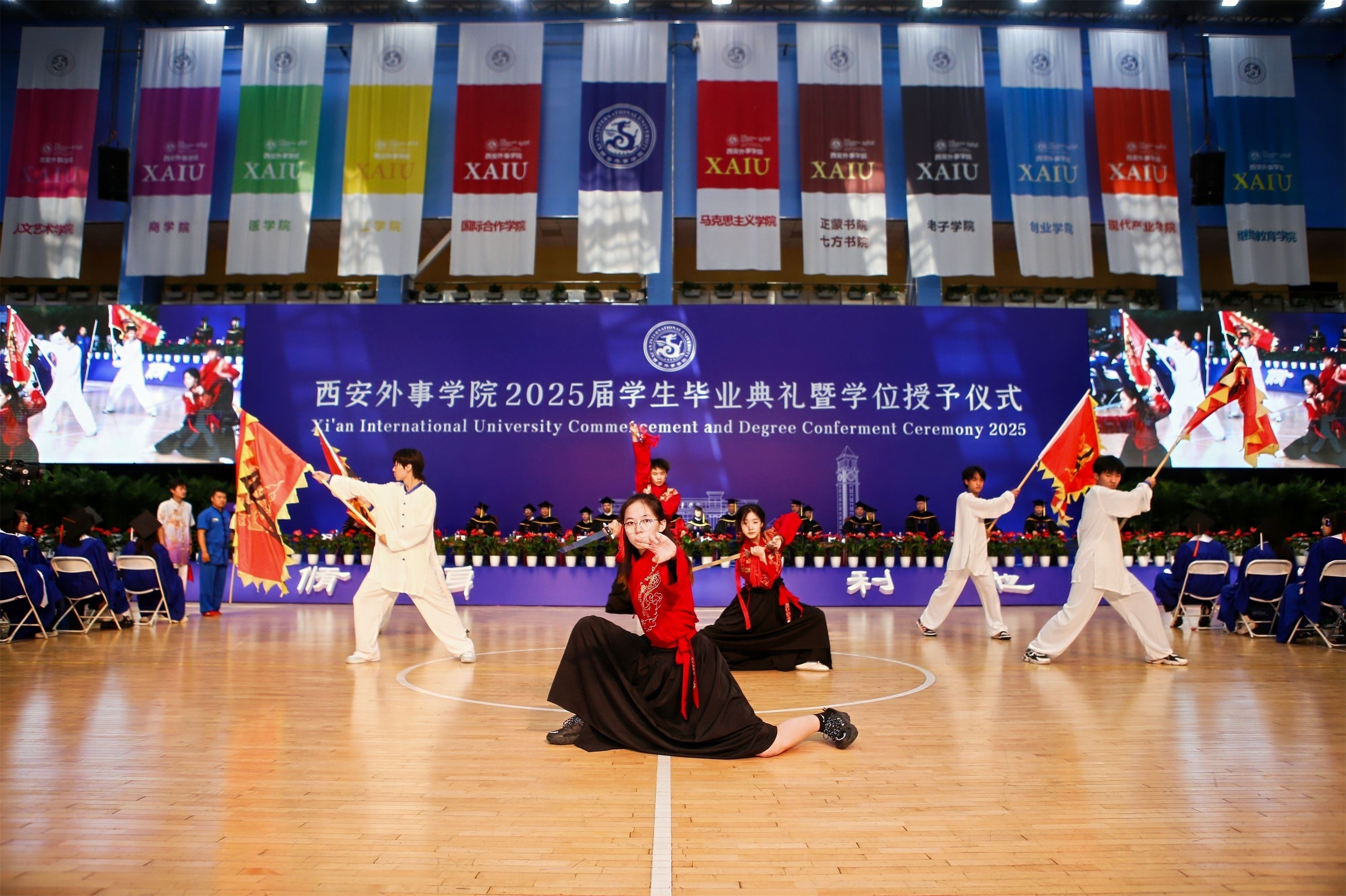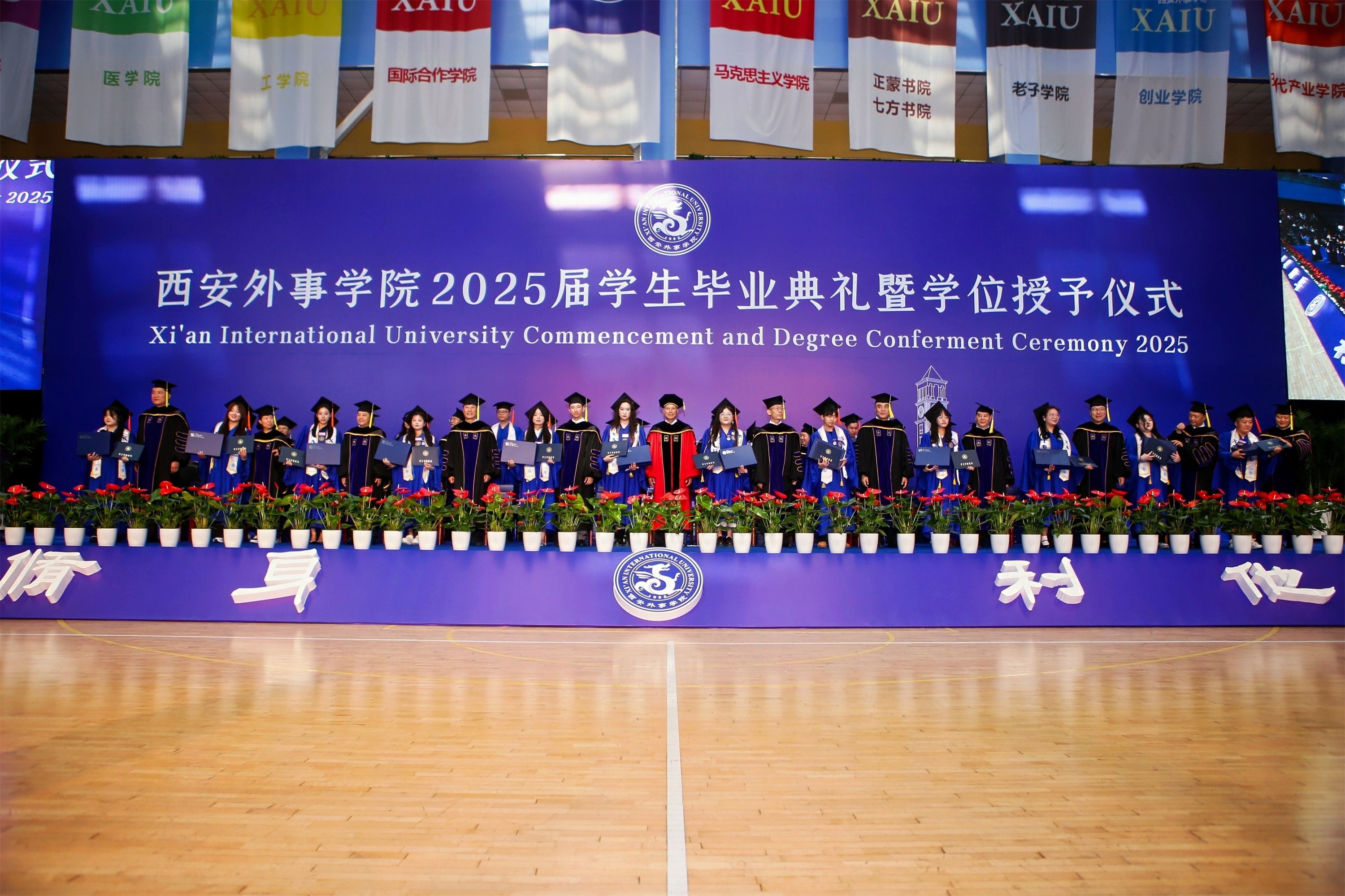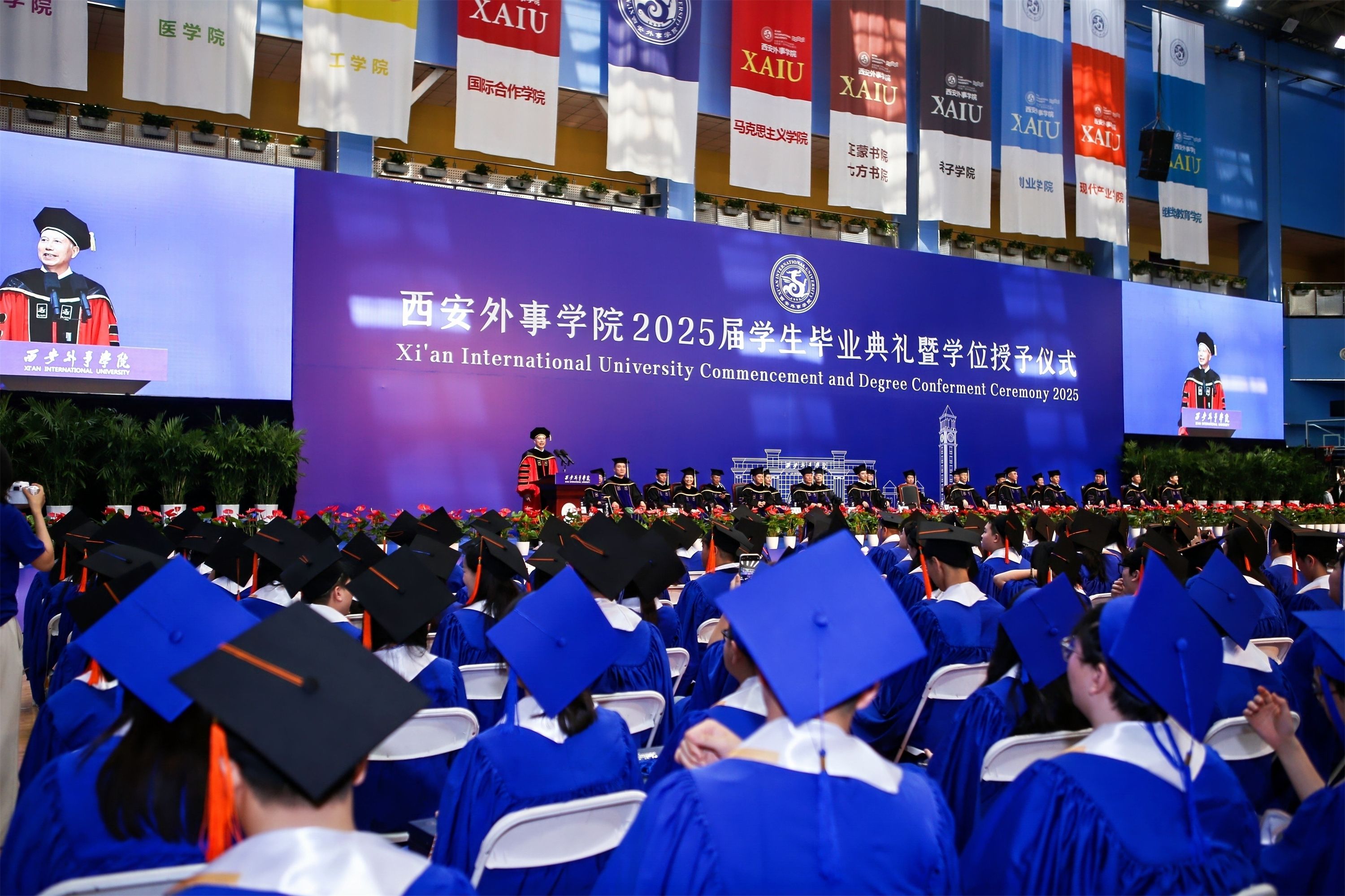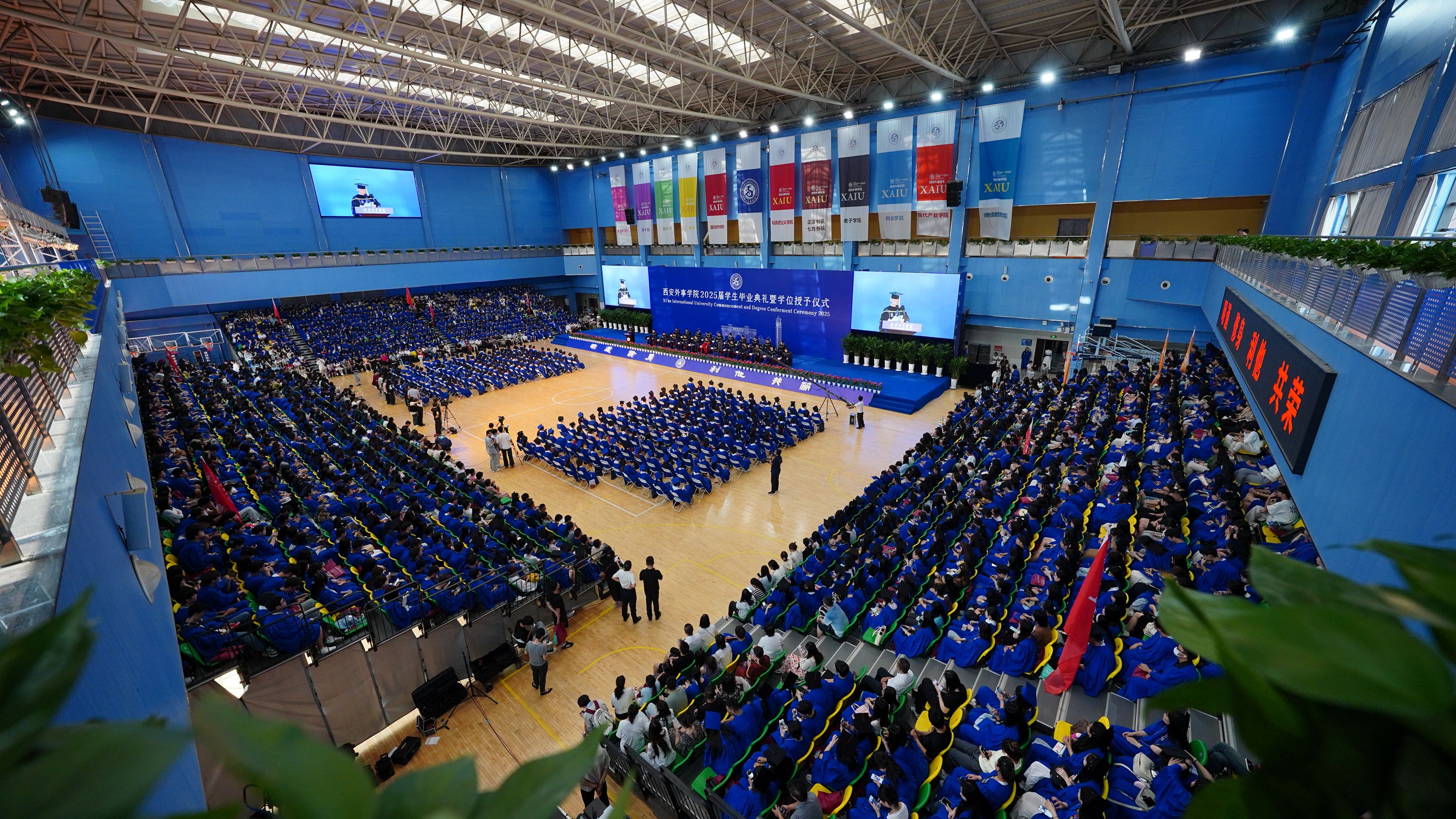 6月21日上午,西安外事学院2025届学生毕业典礼暨学位授予仪式在体育馆盛大举行。