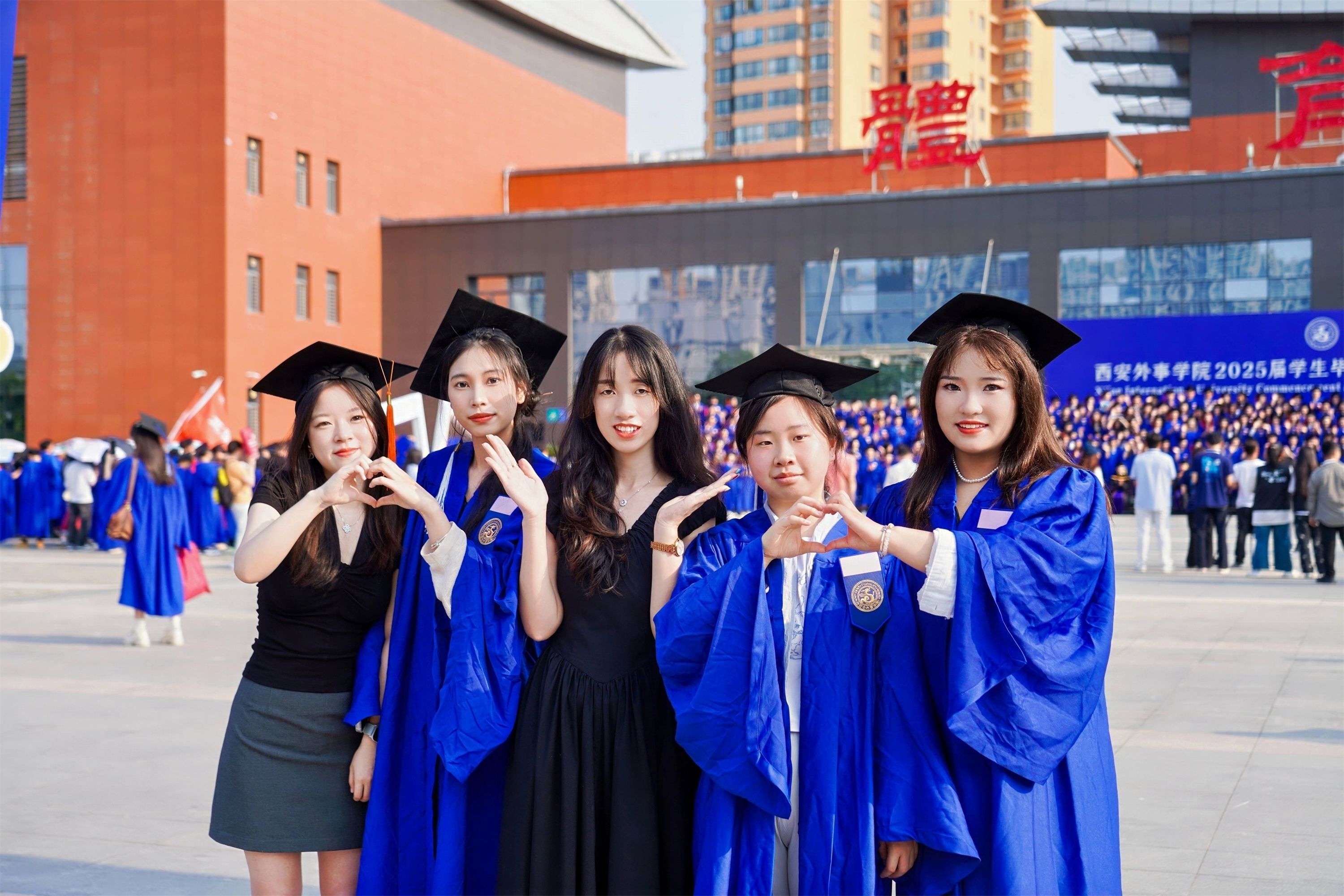 毕业生们铭记"明道、修身、利他、共荣" 的校训,带着在西安外事学院淬炼的品格、能力和情怀,满怀师生情谊,化鱼成龙,即将踏上新的征程。