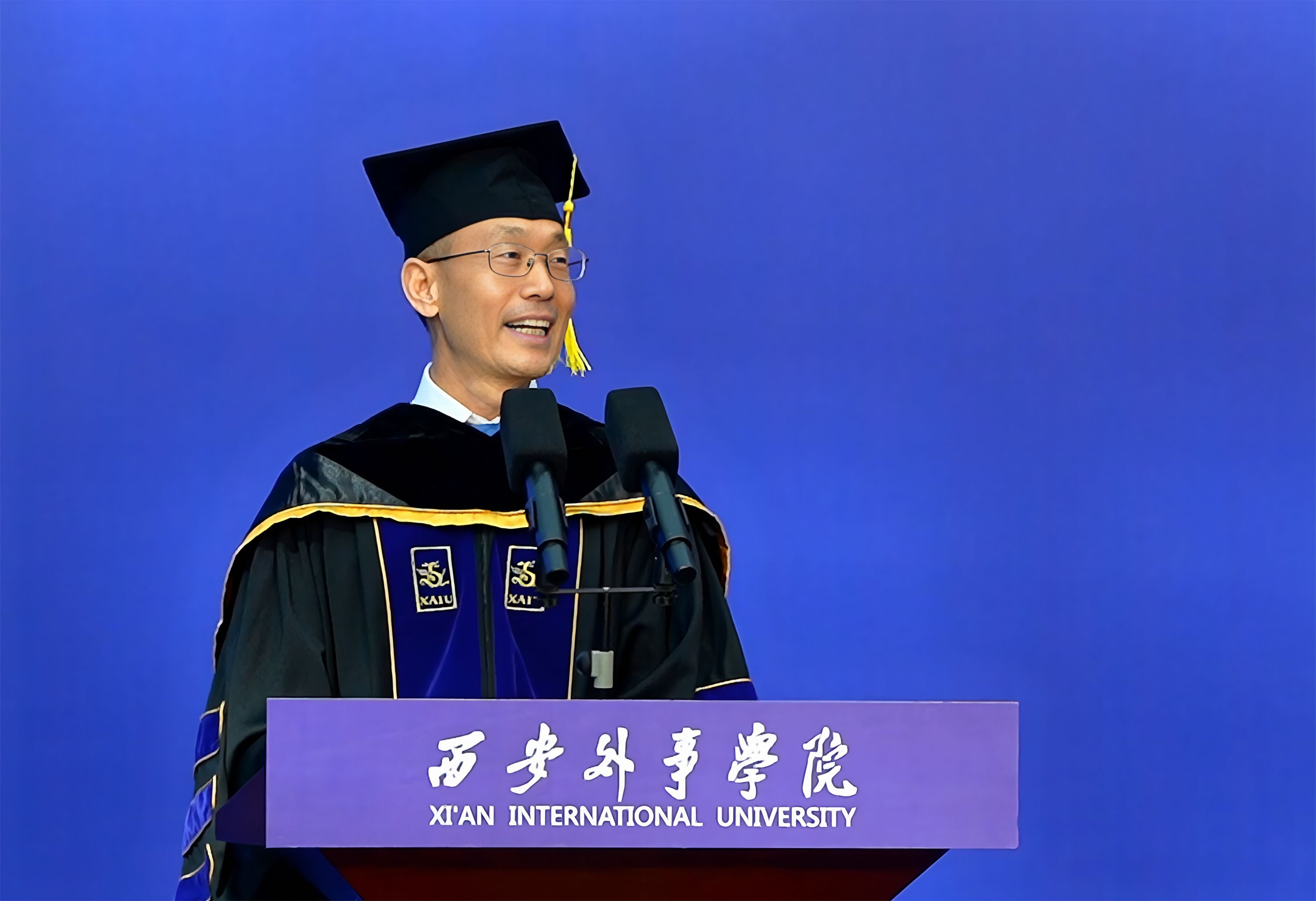 雷西合书记宣读了西安外事学院关于准予2025届普通本科学生毕业的决定、授予2025届普通本科毕业生学士学位的决议、准予2025届高职学生毕业的决定以及表彰2025届优秀毕业生、优秀毕业生干部的决定,表彰2025届毕业生优秀共产党员的决定。
