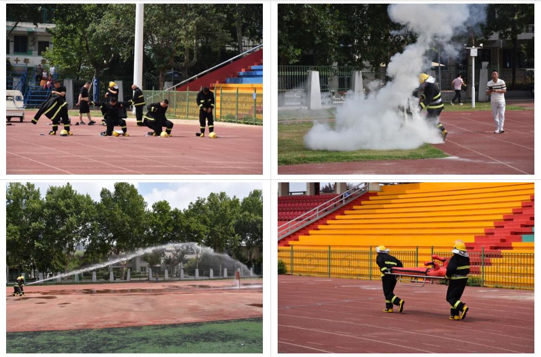 本次竞赛设置理论考核和技能比武两大板块。理论考核内容涵盖消防知识、技防知识、治安知识、交通知识、校园文化、应急处突流程等,已于5月初完成。技能比武设置了原地穿着灭火防护服、使用干粉灭火器扑救明火、使用室外消火栓射水靶、铺设收纳消防卷盘水带、使用担架模拟救护假人共5项。