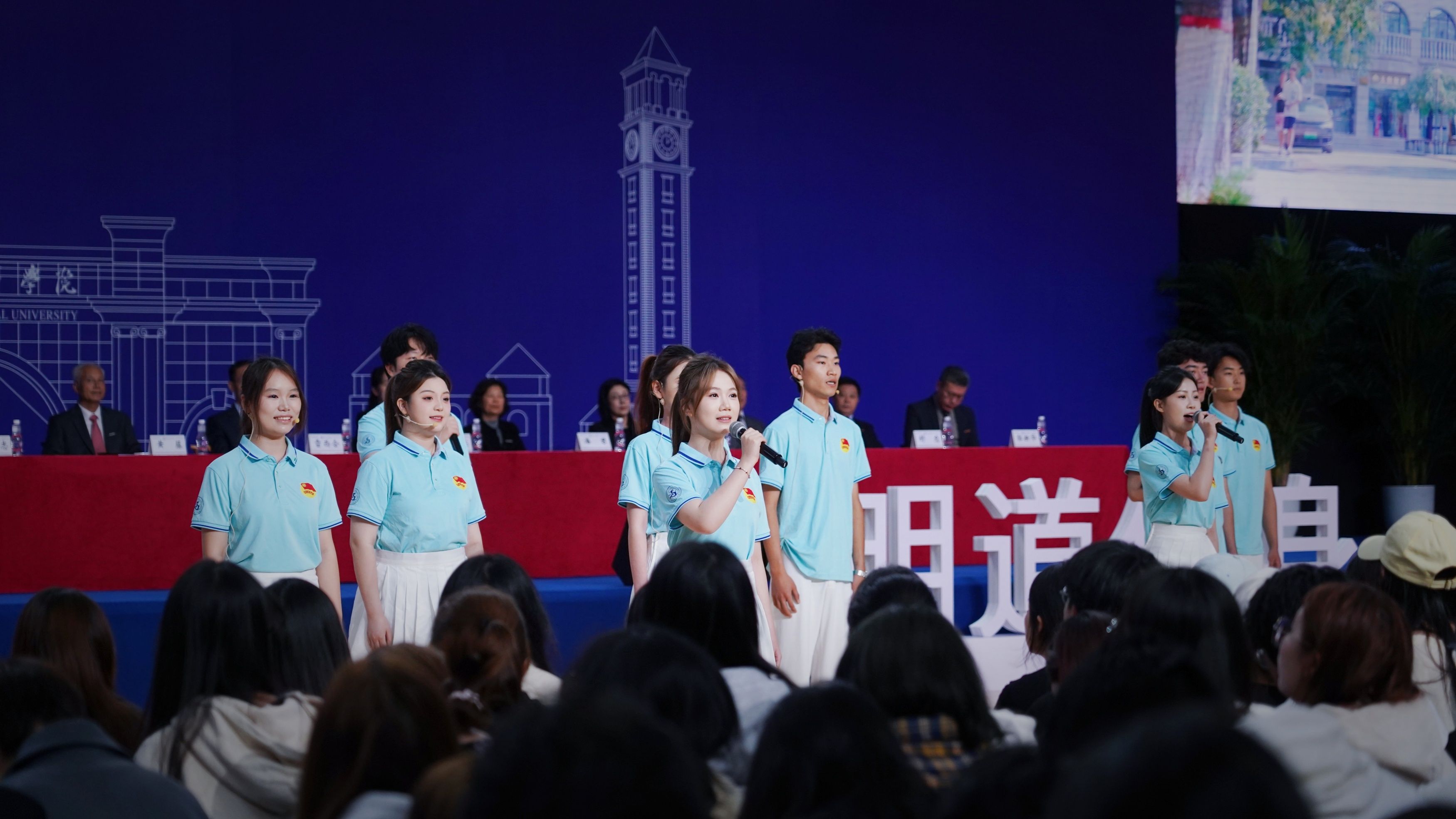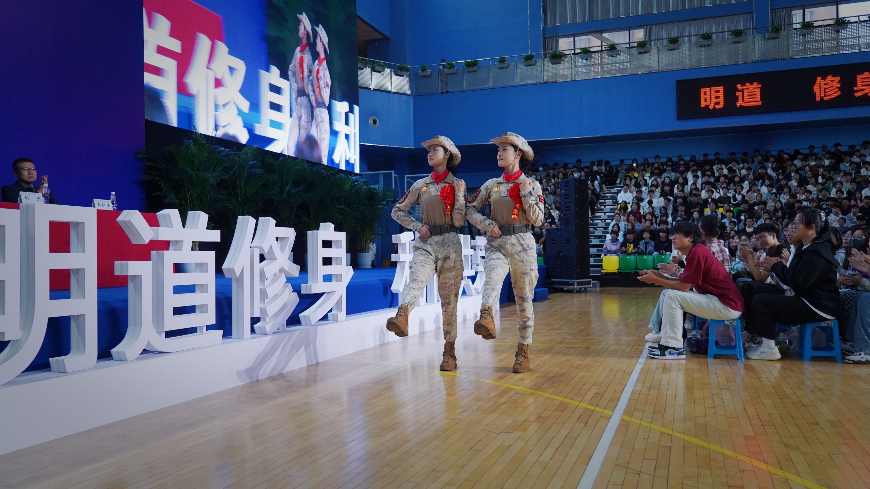 师生带来的丰富多彩的节目为典礼注入青春活力。歌曲《再一次出发》唱出“出发就是现在”的时代强音;诗朗诵《以青春之名赴时代之约》诠释了青春因信念而闪耀、时代因奋斗而恢宏的深刻内涵;歌伴舞《我乘着风飞过来》点燃了大家的激情,展现出蓬勃向上的精神风貌。