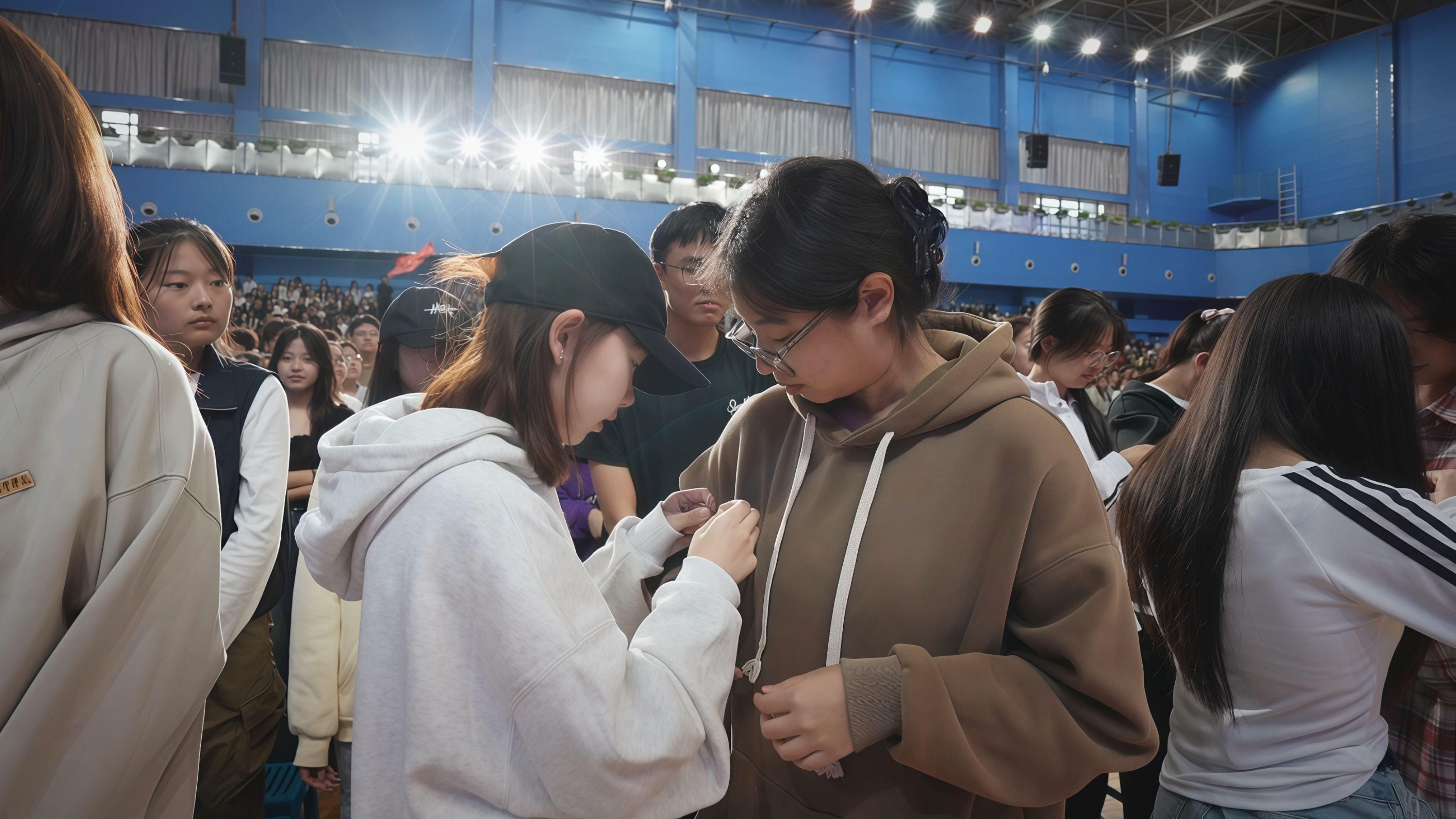 典礼上举行了庄重的新生校徽佩戴仪式。当闪亮的校徽别于胸前,2025级新生将从此共担外事人的使命,共赴外事人的荣光,努力成为勇于进取、自强不息的新时代外事人。