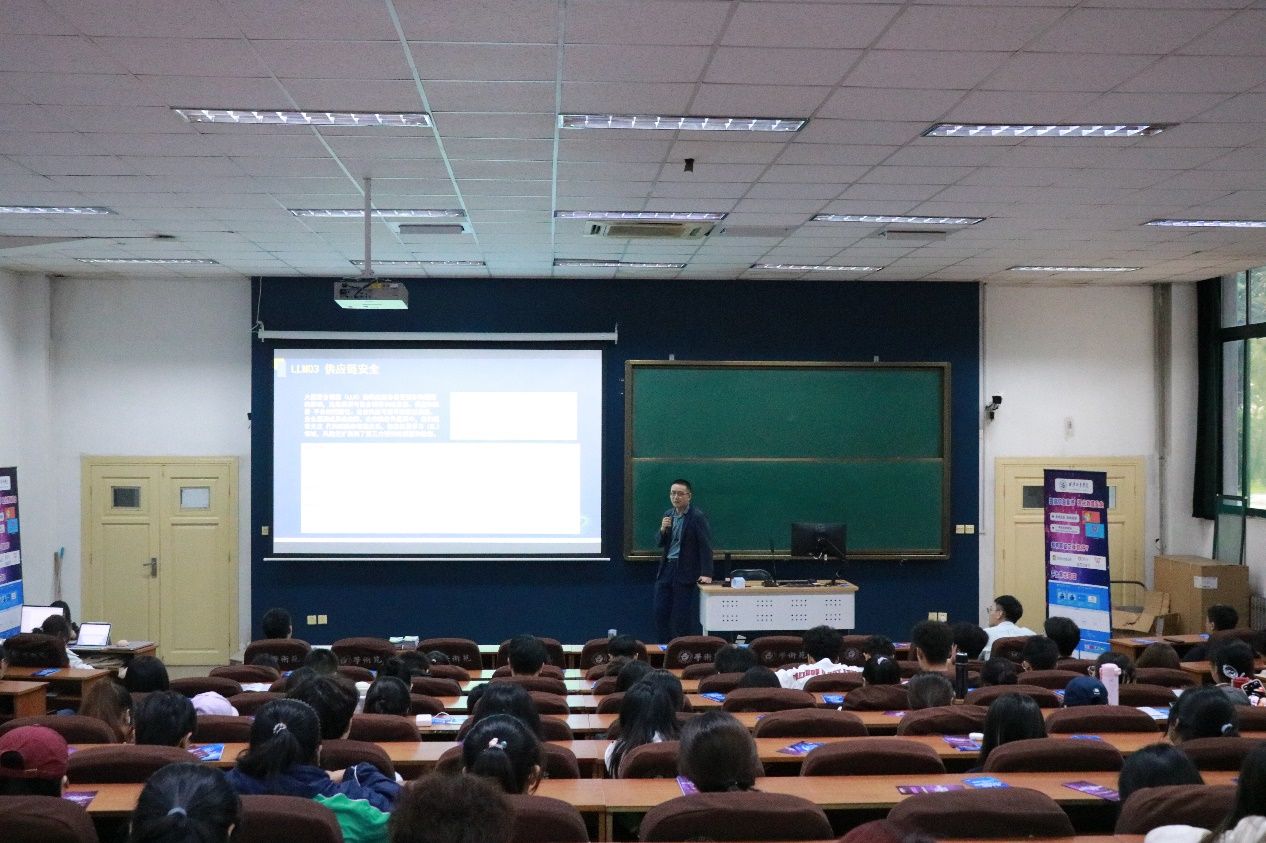 讲座现场,魏晨老师分享了《AI时代下的安全挑战与应对策略》,通过大量典型案例生动形象地讲解了AI应用中的各类安全问题,让学生们对AI安全有了深刻认识,为学生们日常使用AI提供了宝贵建议。
