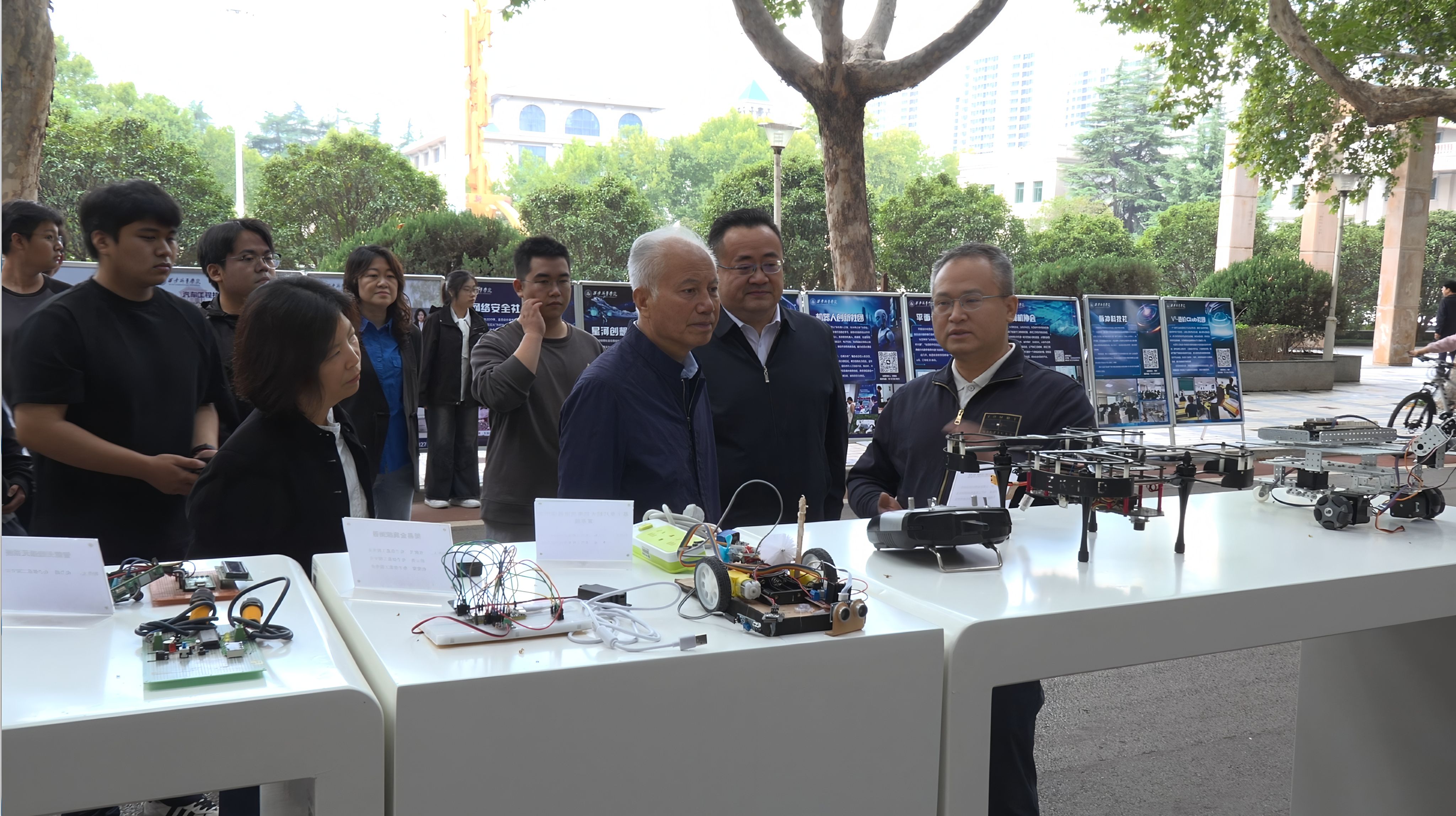 在科技浪潮席卷全球的今天,西安外事学院工学院作为学校工程技术人才培养与科技创新的核心阵地,于近日举办了一场充满想象力与实干精神的科技展。2025年9月26日,学校理事长、校长黄藤,教学与研究工作部部长潘君在工学院副院长马强等相关工作人员陪同下,指导调研了科技展。