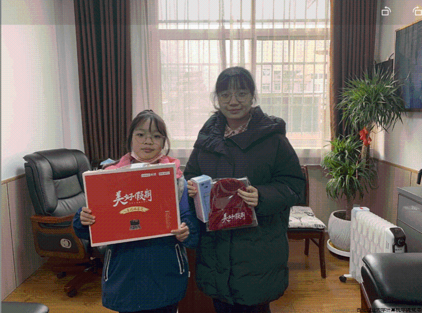 2021级本科生宋泽慧在春节期间前往3位村中留守儿童家中,为他们赠予爱心物资。宋泽慧和留守儿童们一起拜访了秋池小学的“门卫爷爷”,小朋友们将象棋和春联等物资赠予爷爷,以此表达他们对“门卫爷爷”的谢意与敬意。