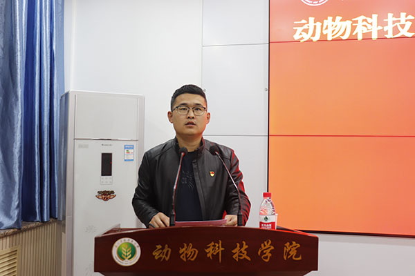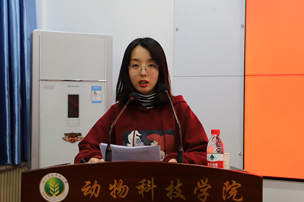 辅导员张明侠宣读了《动物科技学院“朋辈助学团”成员管理办法》