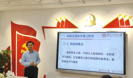 党课结束后,管理学院党委书记张强同志、简牍学师生联合党支部书记李迎春同志分别作了总结发言。张强书记指出,本次党课十分详细地展现了两千多年前简牍中汉代行政管理的细节,这为我们推动管理学与简牍学交叉、融合的计划,提供非常重要的理论支撑。李迎春书记指出,11月4日,习近平总书记在湖北孝感市云梦县博物馆参观时指出,古代简牍非常珍贵,是我们国家信史的重要实物佐证,要善加保护,做好研究。当前,学校“简牍学”一流学科建设正如火如荼进行,习总书记的这一重要讲话精神使我们备受鼓舞,西北师大简牍学科建设与简牍研究大有可为。