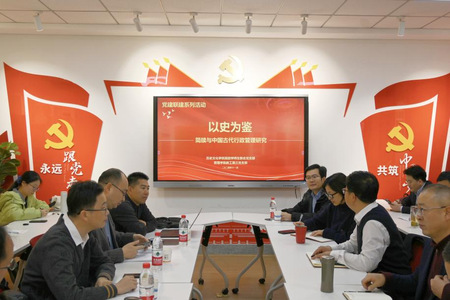 2024年11月24日上午,历史文化学院简牍学师生联合党支部与管理学院教工第三支部教10-B315会议室联合举行“党建引领简牍学交叉研究”党课学习。本次党课由简牍学师生联合党支部书记李迎春同志主讲,讲题为“以史为鉴——简牍与中国古代行政管理研究”,简牍学师生联合党支部、管理学院教工第三支部全体党员参加此次党课学习。