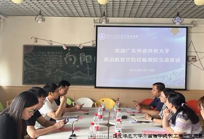 2024年6月18日,广东外语外贸大学英语教育学院党委副书记罗诞铖、团委书记刘博洋前往外国语学院交流座谈。党委副书记安燕、教工第一党支部教师曹文和韩文菊,团委书记王芸霞、专职辅导员张碧全、曹亚婷、何媛媛参会。