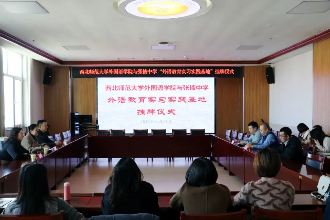 10月31日,西北师范大学外国语学院与张掖中学隆重举行“外语教育实习实践基地”挂牌仪式,标志着双方在外语教育领域的协同合作正式启动。张掖中学副校长李晓明、教务处主任汪兴盛、行政办公室副主任杨文科及英语学科组教师代表、西北师范大学外国语学院副院长陈倩、翻译硕士培养中心副主任郭亚文、英语系副主任刘永娟,共同出席仪式,见证这一重要时刻。