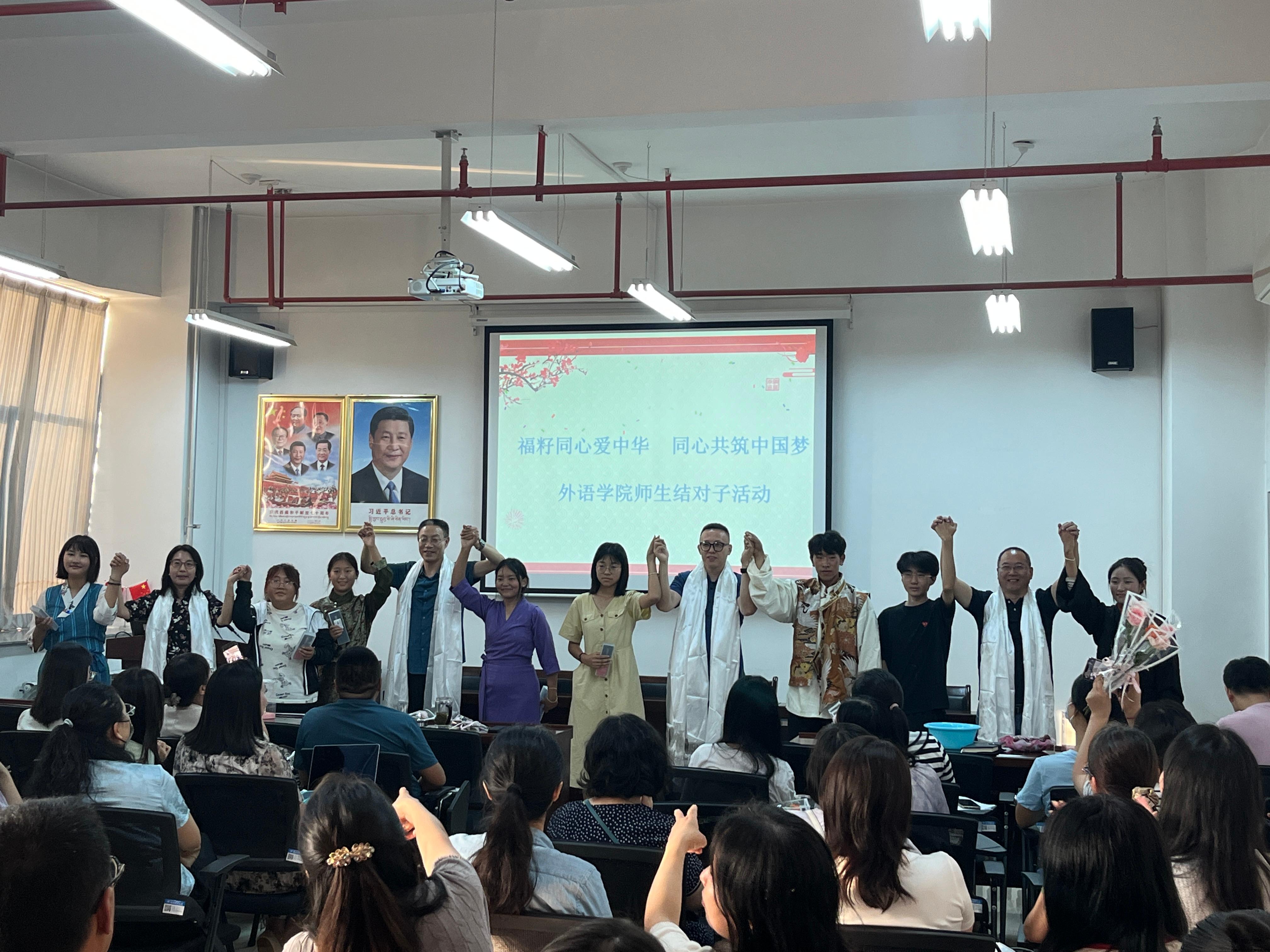 为全面贯彻党的二十届三中全会精神,践行习近平总书记致我校建校60周年贺信中关于“加强民族团结进步教育”“自觉维护民族团结”的重要指示精神,强化铸牢中华民族共同体意识教育,更好地关注学生成长,提升教育质量,外语学院于9月19日在实验楼406举行“福籽同心爱中华 同心共筑中国梦---心手相连”师生结对子活动启动仪式。外语学院全体教职工及学生代表参加启动仪式。