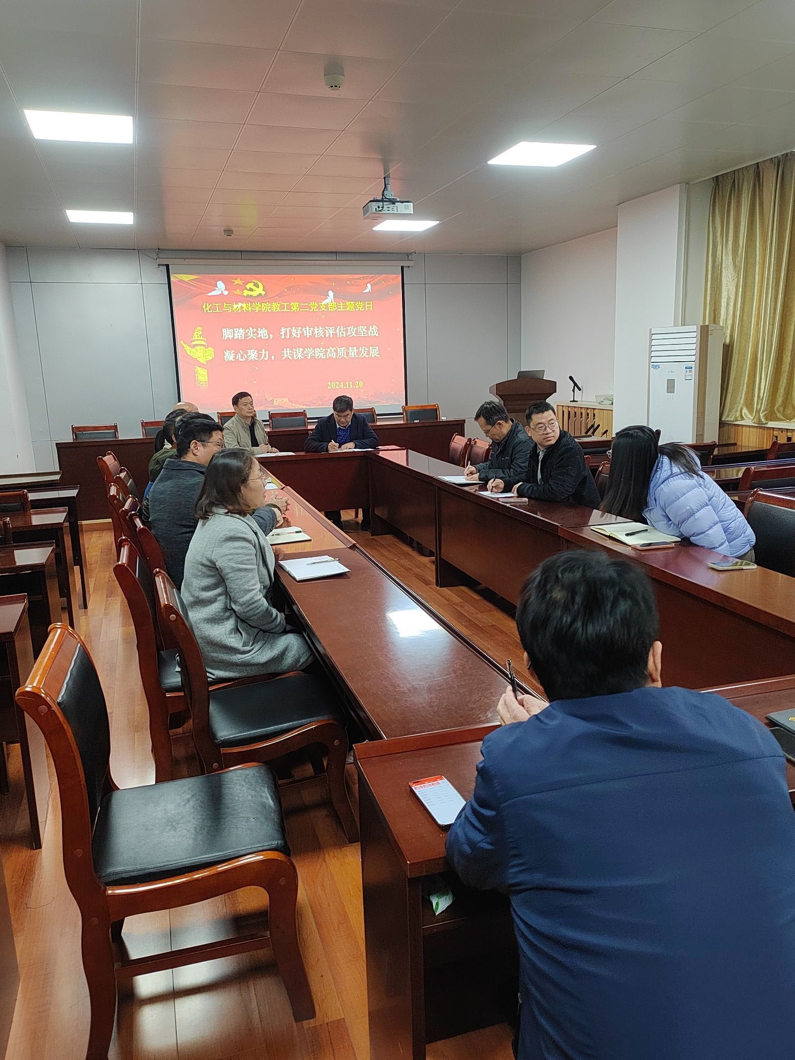 2024年11月20日,我院教工第二党支部开展主题党日活动“脚踏实地,打好审核评估攻坚战,凝心聚力,共谋学院高质量发展”。化工与材料学院党委书记许志红出席会议,会议由组织委员李会主持。