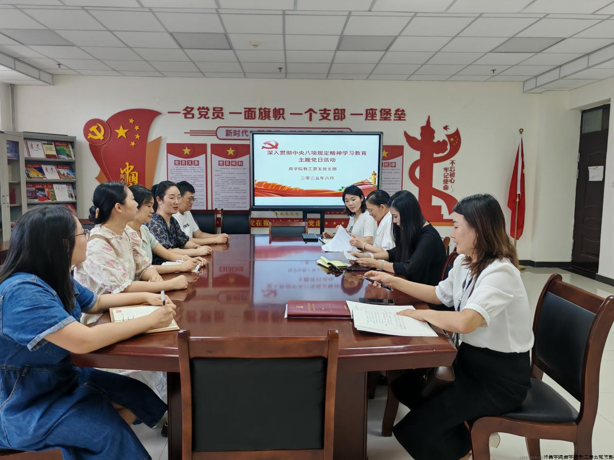 2025年6月16日下午3点,商学院教工第五党支部在1325党员活动室,开展“深入贯彻中央八项规定精神学习教育”主题党日活动。
