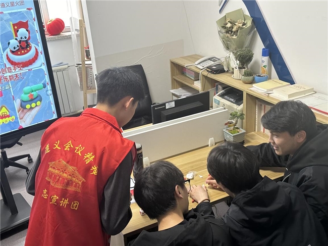 同日,在伊犁伊宁市汉宾乡汉宾村村委会,志愿者阿加尔・艾尔江聆听近代历史讲解后,主动担任红色讲解员,为 10 余人讲解遵义会议,强调其挽救党和红军的关键作用,加深听众对历史的理解,激发传承红色精神、建设家乡的热情。
