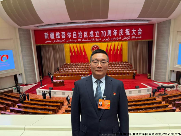 9月25日,马克思主义学院党支部书记陈新刚同志作为新疆教育界代表参加了新疆维吾尔自治区成立70周年庆祝大会。