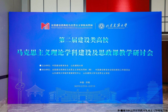 近日,第二届全国建设类高校马克思主义理论学科及思政课教学研讨会在山东建筑大学召开。会议以“落实中央城市工作会议精神与马克思主义理论学科建设及思政课教学融合”为主题,旨在汇聚全国建设类高校在马克思主义理论学科建设和思政课改革创新经验、探索育人新路径。会议由中国建设教育协会和山东建筑大学主办,全国建设类高校马克思主义理论及思政课教学专家学者围绕落实党的二十届四中全会精神、中央城市工作会议精神融入思政课教学及思政课改革创新等主题开展了学术研讨和交流。