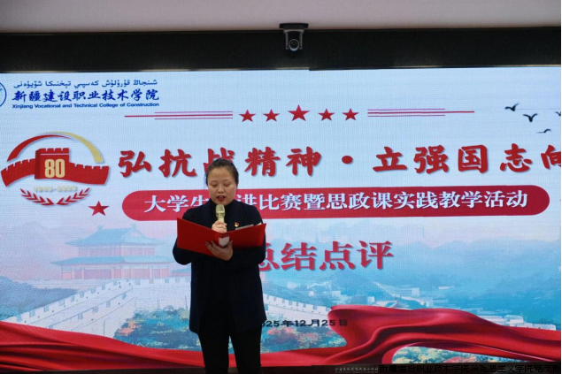 活动伊始,学院副院长马桂珍进行活动致辞,充分肯定了此次活动形式的创新,鼓励参赛选手以饱满的热情、真挚的情感,讲好抗战故事,传承抗战精神,在比赛中展现青春风采、彰显使命担当。她指出,此次活动将课堂理论转化为实践体验,既是多支部联动开展的主题党日活动,更是深化 “三进两联一交友”工作的生动实践,让党员教师与同学们在活动中近距离交流、心贴心成长。