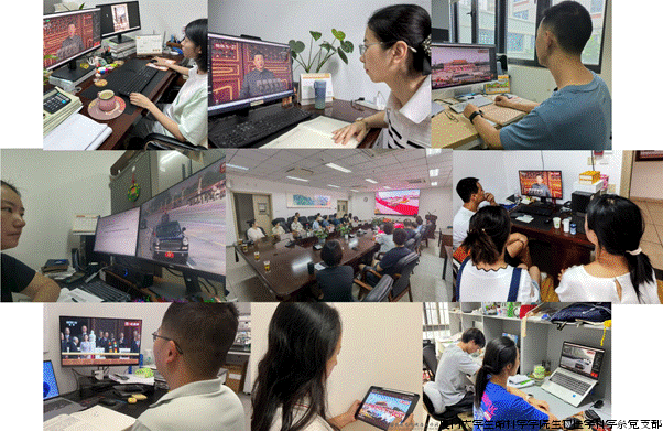 而支部的其他党员们,也通过各种方式,在不同的地点同步观看了这一历史性的时刻。有的党员在办公室里,利用电脑或电视,认真观看阅兵仪式,在工作间隙也不错过这一重要的庆典;有的党员在家中,与家人一起围坐在电视机前,共同感受大会的氛围,和家人一起缅怀抗战历史,传承爱国精神;还有的党员身处安全培训现场,在培训休息时间,通过手机等设备关注阅兵的进展,与一同参加培训的同事们交流观看感受。无论身处何地,党员们都心系祖国,积极参与到这场全民的爱国盛事中。