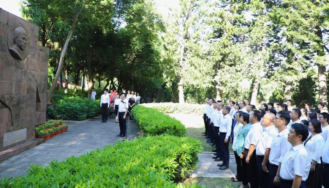 在翔安校区,校长助理、翔安校区管委会主任陈光与校区管委会相关负责人、校区各学生组织骨干和扬才班成员共同在罗扬才烈士浮雕前缅怀革命先烈、行三鞠躬礼并默哀一分钟。随后,在场师生依次上前向烈士雕像敬献鲜花,表达深切缅怀和崇高敬意。