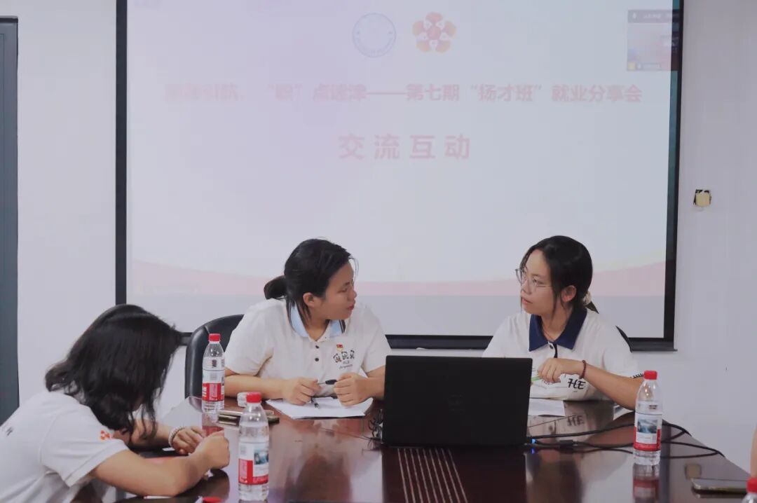 10月17日,第七期“扬才班”组织开展“朋辈引领,‘职’点迷津”就业分享会,帮助“小扬才”明确职业方向、提升就业竞争力。本次活动采用线上线下相结合的方式,邀请第三期“扬才班”学员凌梅婷和第五期“扬才班”学员张元昕、杨培植带来高校党政/辅导员求职备考经验分享。