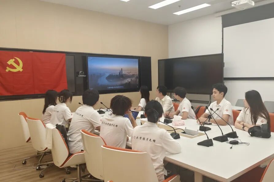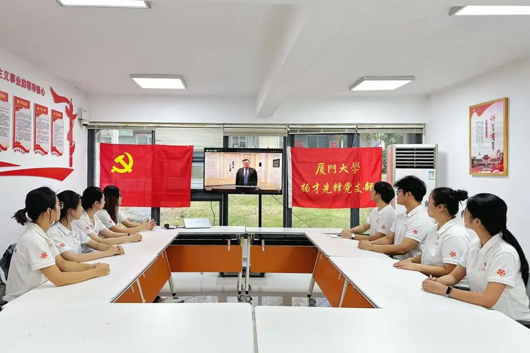 厦门大学扬才先锋党支部组织在思明、翔安、漳州三校区同步收看直播,并在观看结束后分享心得感悟。