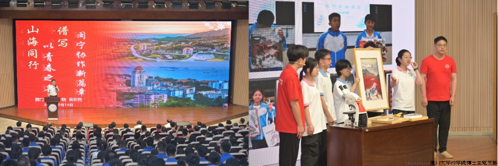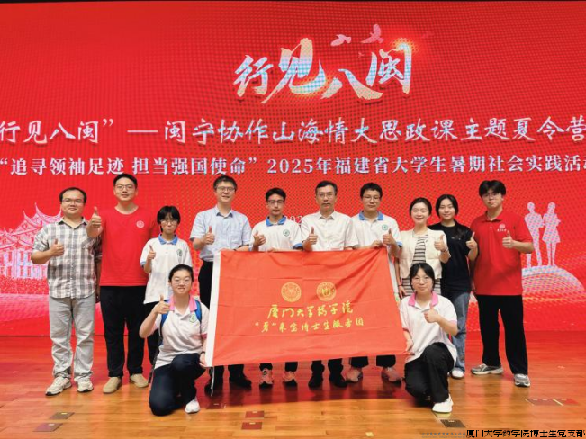 7月14日,吴彩胜教授带领团队在“行见八闽”——闽宁协作山海情大思政课主题夏令营开营式暨“追寻领袖足迹 担当强国使命”2025年福建省大学生暑期社会实践活动出征仪式上,以“薯来宝”实践故事为蓝本展演思政微课堂,将这份青春力量传递给更多青年。