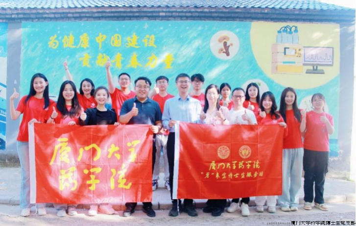 这张定格着厦大药学文化墙的合照,后来被贴在村口公告栏,配文:“一面墙,一座桥,药学知识进乡村,闽宁情深共成长。”