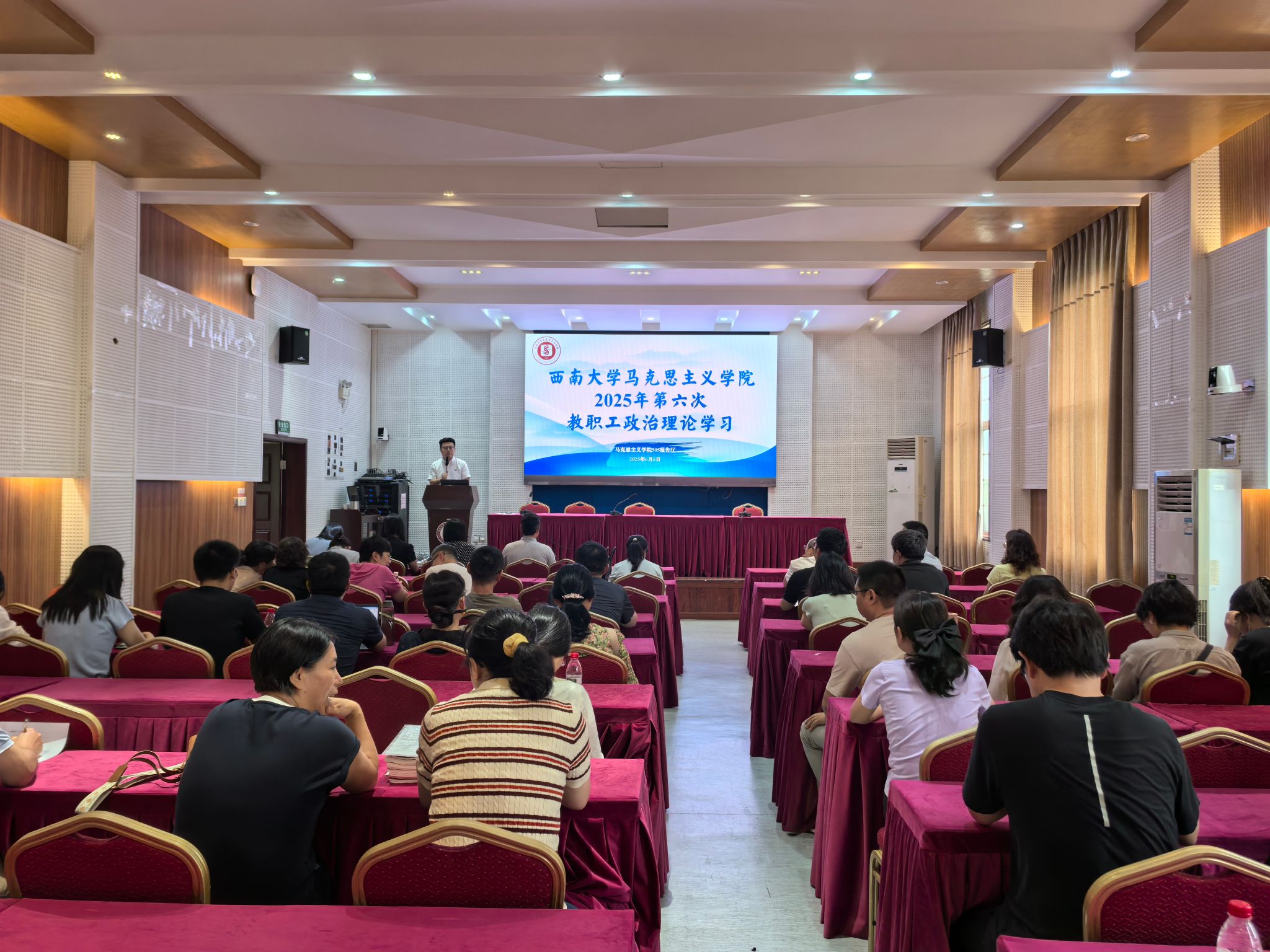 2025年6月6日下午,学院在501报告厅开展2025年第六次教职工政治理论学习,集中学习了习近平总书记在河南考察时对开展深入贯彻中央八项规定精神学习教育发表的重要讲话精神、习近平总书记对“十五五”规划编制工作作出的重要指示精神、习近平总书记对精神文明建设工作作出的重要指示精神、习近平总书记致复旦大学建校120周年的贺信、《求是》杂志发表的习近平总书记重要文章《锲而不舍落实中央八项规定精神,以优良党风引领社风民风》和《宗教事务条例》。学院全体教职工参加,学院党委书记吴文杰主持,本次教职工政治理论学习由学院党委副书记罗亮领学。