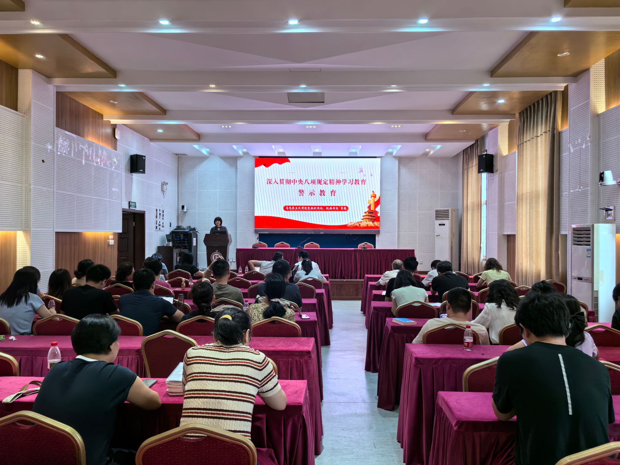 2025年6月6日下午,学院在501报告厅开展深入贯彻中央八项规定精神学习教育警示教育。学院全体教职工参加,学院党委书记吴文杰主持,学院党委副书记、纪委书记曾艳主讲。