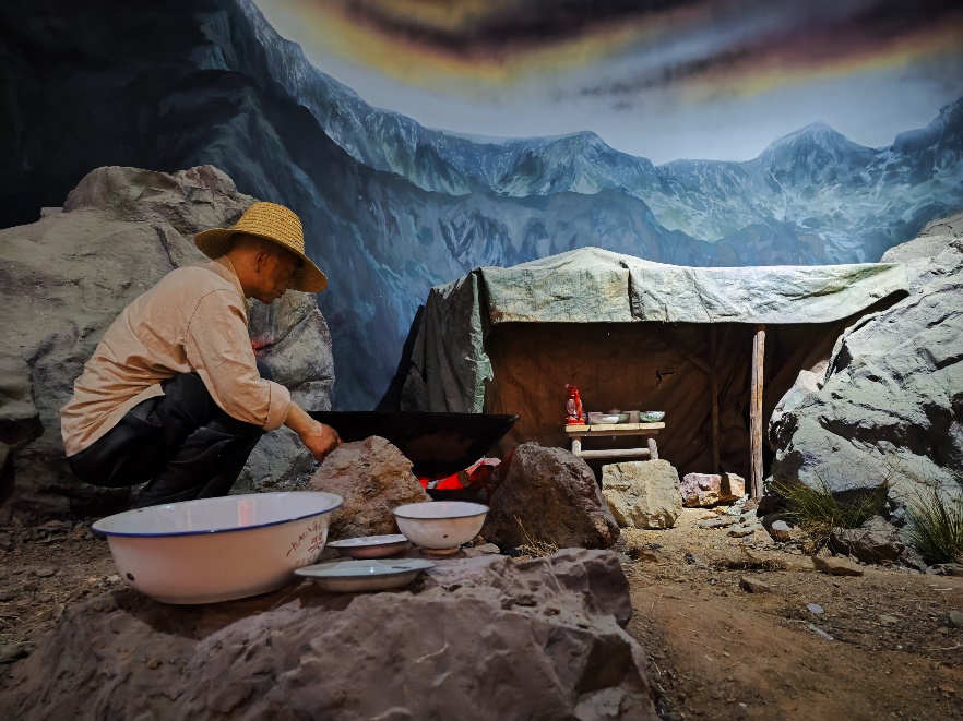 跟随讲解员的步伐,支部成员们走进展厅第三层。看着建设者们使用过的生活用品、生产工具和居住条件,大家纷纷感慨那个物质匮乏的年代建设者们的艰辛。走到成昆铁路修筑大会战展区时,参观队伍放慢了脚步。据讲解员介绍,当年建设者们在这片所谓“修建铁路的禁区”中,建成了全长1096公里的成昆铁路,打通连接川滇两省的钢铁大动脉,为国家建设、地方发展、民族团结进步发挥了难以估量的巨大作用。