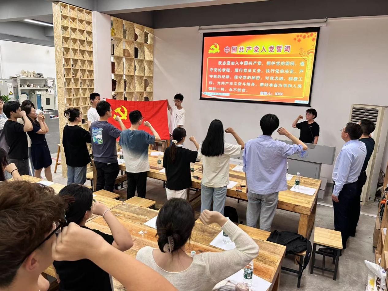 随后,栗民带领党员同志面向党旗重温了入党誓词。党员们整齐列队,佩戴党员徽章,高举右手,庄严宣誓:“我志愿加入中国共产党,拥护党的纲领……”栗民书记提醒每个党员时刻牢记入党誓词、忠诚信仰,永葆中国共产党党员的政治本色。