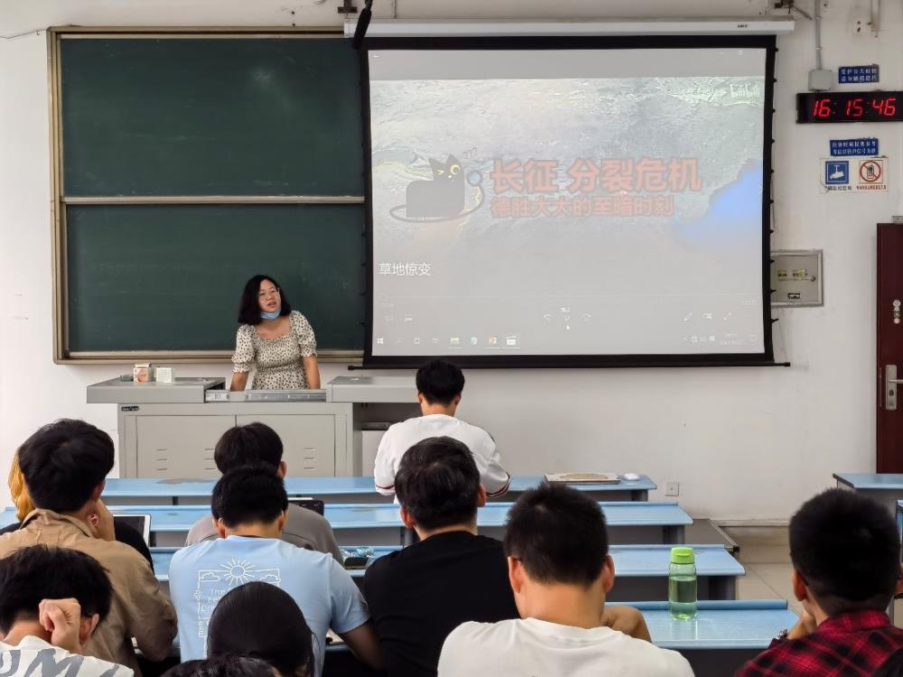 接下来,欧云书记播放了与长征有关的党史视频,名为“沙盘推演:长征分裂危机!德胜大大的至暗时刻!北上南下之争”。视频讲述了红一方面军与红四方面军在长征途中发生的分裂危机,两支部队在讨论军队北上还是南下起了争执。最后中央红军在毛泽东的正确带领下选择北上,在陕北建立了中央根据地,而张国焘则带领红四方面军南下。
