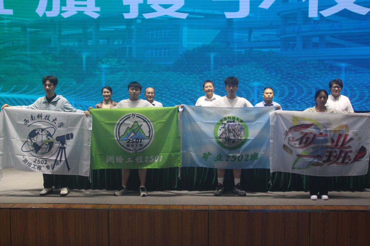 为增强班级凝聚力、促进学生成长并引导其将个人发展与班级、学院乃至国家发展相联系,今年暑假,学院组织25级本科生开展班旗设计比赛,同学们充分发挥创意,自主设计出各具特色的班级班旗。会议尾声,学院开展班旗授旗仪式——以班旗为引,开启25级新生成长新征程。仪式现场,矿业、测绘、环境、地信、安全、地质等专业的2025级班级代表依次登台,院领导为各班代表郑重授旗并合影留念。每一面班旗,都承载着班级的精神与梦想,接过班旗,同学们也接过了一份沉甸甸的责任。