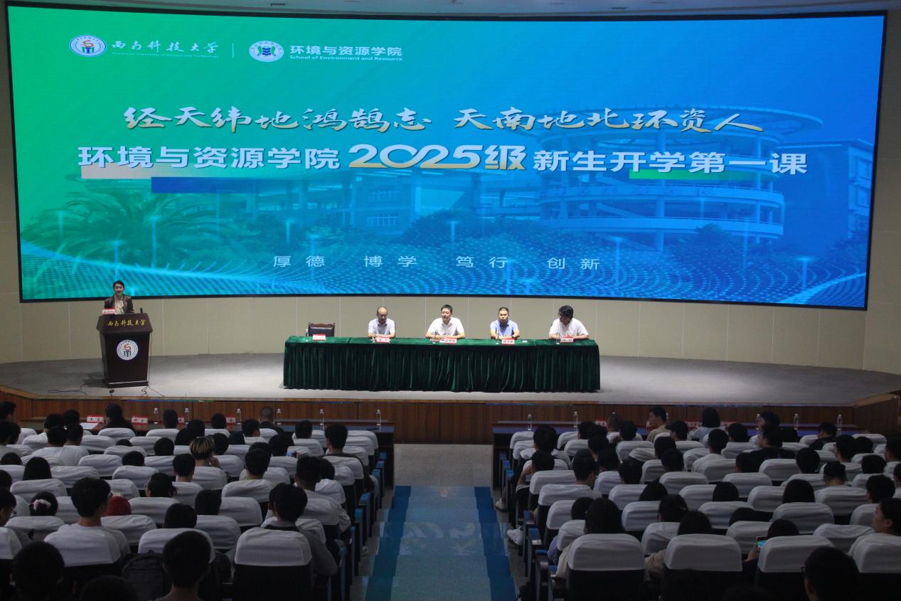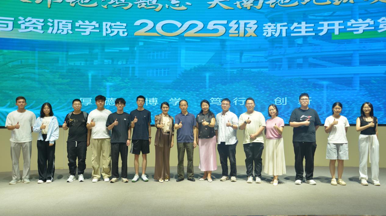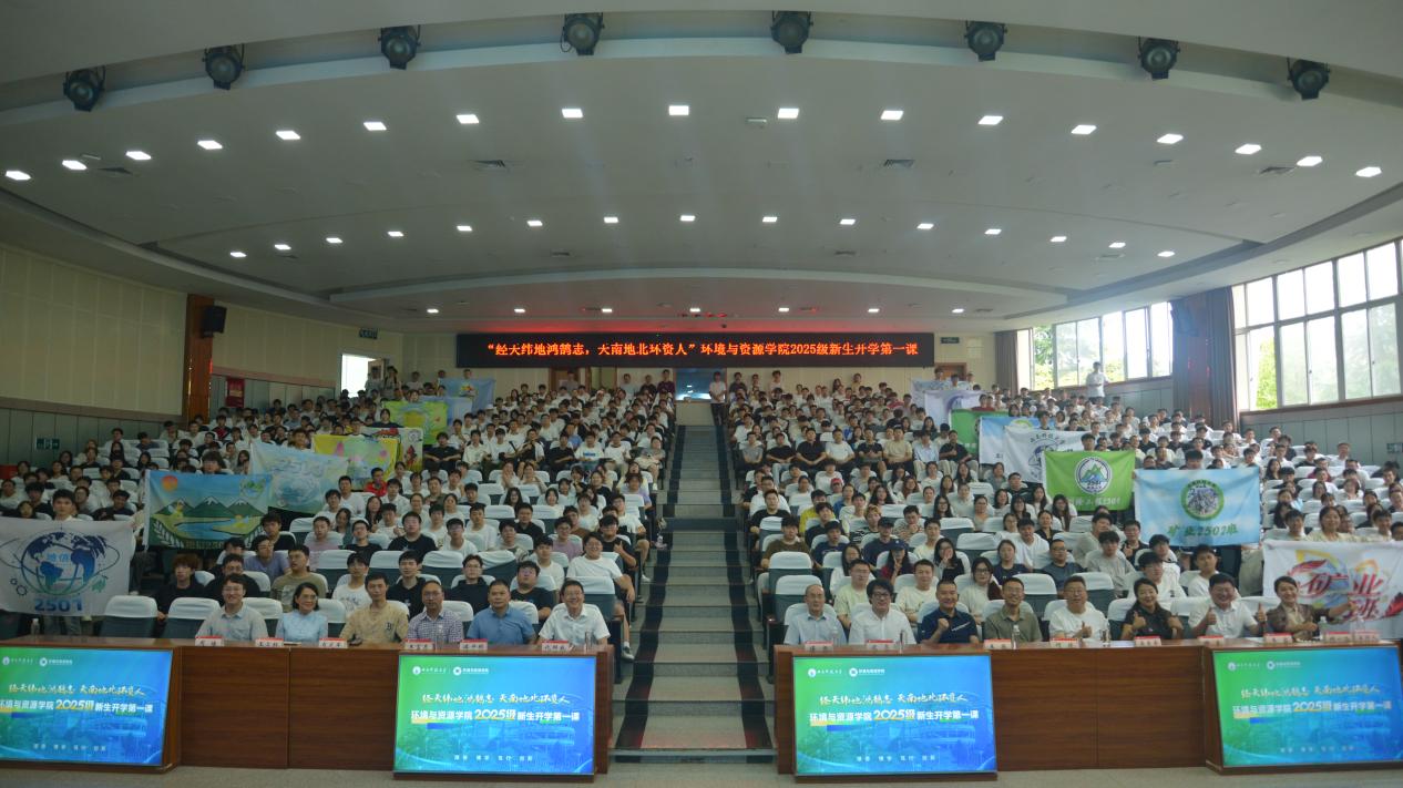 9月11日,环境与资源学院于东五学术报告厅举行2025级新生开学第一课,学院党委书记代群威、院长谌书、党委副书记兼纪委书记钟一鸣、副院长傅开彬、副院长边亮及2025级全体新生参加本次活动。