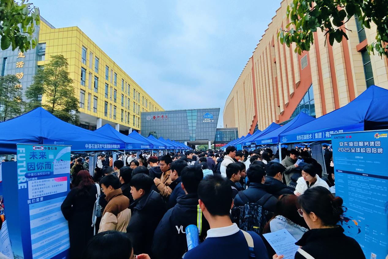 2月27日,华为、中化、中建、中电建、京东方、京东、新疆亚新煤层气、斯伦贝谢、华润燃气等80余家用人单位在学校摆摊设点,提供了涵盖8个学科门类的就业岗位400余个,总需求量4000余人。