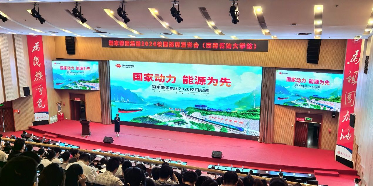 9月24日,国家能源集团2026届毕业生校园招聘宣讲会在我校成都校区图书馆学术报告厅举行,此次宣讲会是国家能源集团举行的2026届毕业生全国首场校园招聘宣讲会。国能大渡河流域水电开发有限公司(国家能源四川发电有限公司、国能四川能源有限公司)党委副书记高廷源,校党委副书记、校工会主席丁林,国家能源集团组织部综合处副处长张翼翔,国家能源集团企业代表,2026届毕业生参与本次活动。