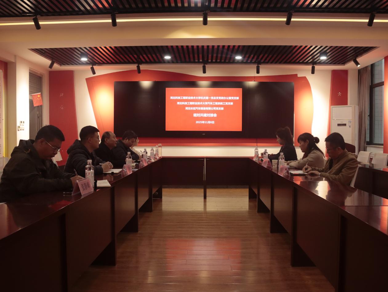 为深化产教融合,以党建引领人才培养与精准就业,11月6日,我系教师党支部、机关第一党总支党政办公室党支部与河北长征汽车制造有限公司党支部结对共建对接会在我系党建会议室成功举行。河北长征汽车制造有限公司人力资源部经理王向月、行政主管李聚波、党政办公室副主任何梦昕、汽车工程系党总支书记马金刚、教工党支部书记盛鹏程及部分党支部老师共同出席了本次会议。双方旨在构建“资源共享、优势互补、协同发展”的新格局,并将系部秋季招聘计划作为共建的重要落地举措。