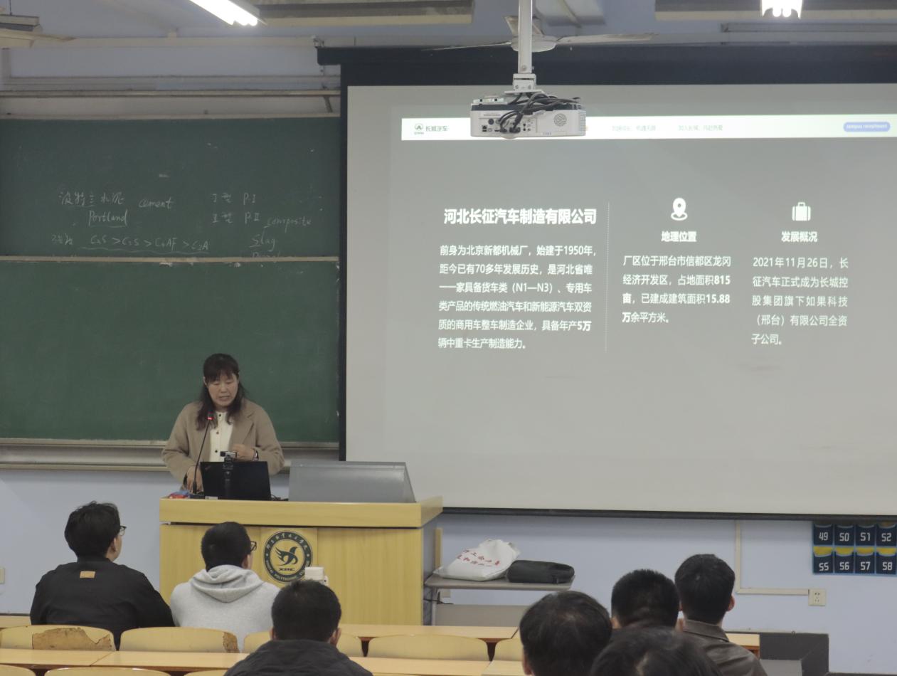 当晚,长征汽车人资经理为我系学生开展就业指导专题讲座,为同学们讲授商用汽车生产、研发的最新动态及行业发展现状。