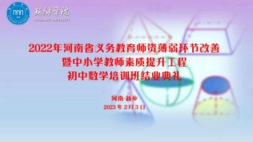 由河南省教育厅主办,新乡学院数学与统计学院承办,为期20天的“‘2022年义务教育师资薄弱环节暨中小学教师素质提升工程’省级骨干教师培育项目——初中数学培训班”集中培训环节圆满结束。
