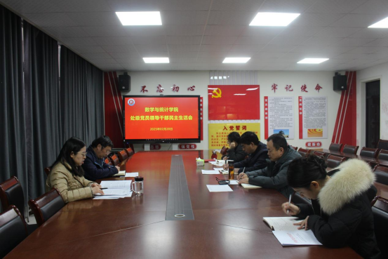 按照学校党委安排部署,2月20日上午,数学与统计学院领导班子在A03-318会议室召开2024年度处级党员领导干部民主生活会。学院领导班子全体成员参加会议,学院党委书记毛群英主持会议。